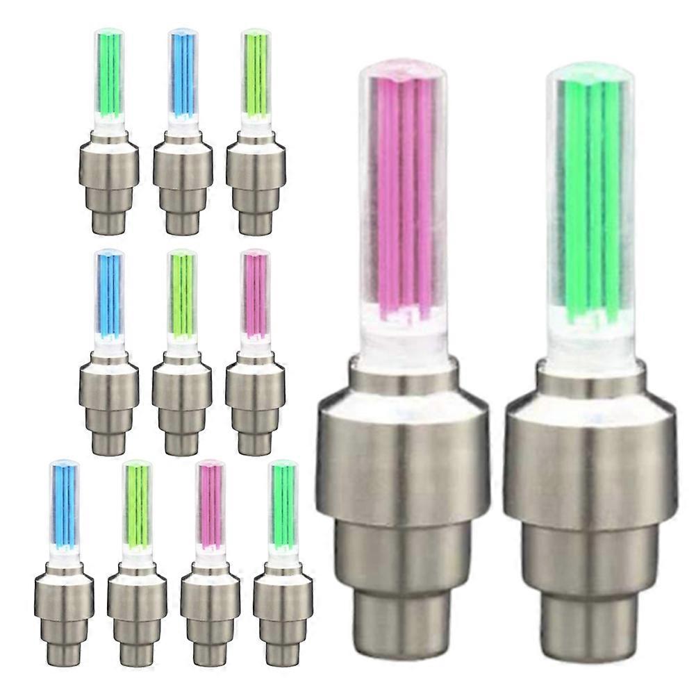 Bicycle Valve Stem Lights Night Riding Aluminum Plastic Assorted Color Long Battery Life 12Pcs