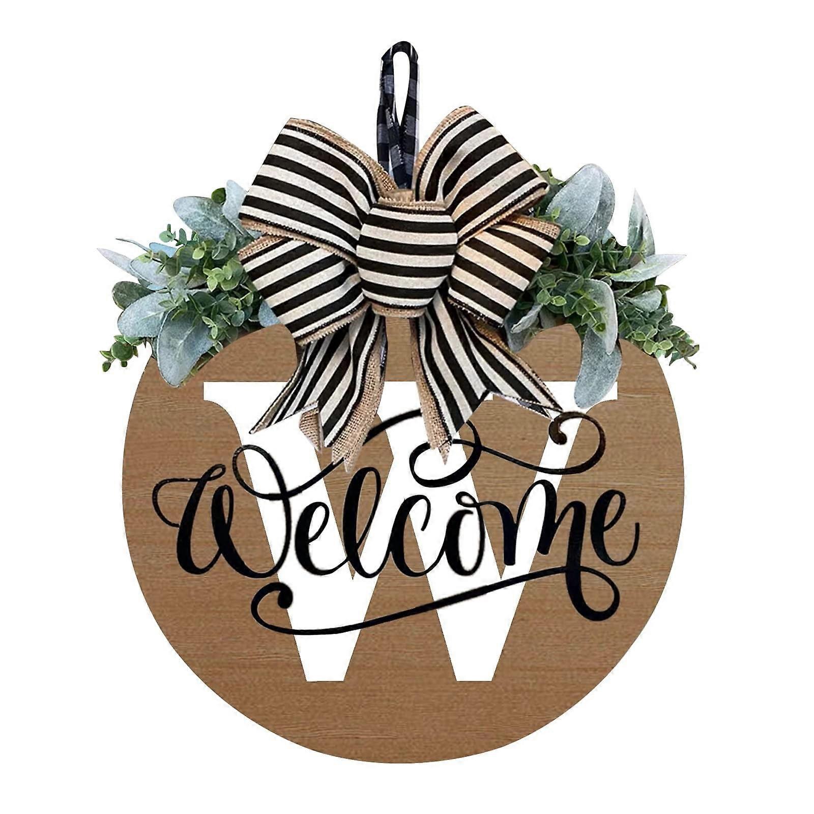 Giyblacko Wreath Summer Last Name 2023 Welcome Sign Garland A-Z Farmhouse Outdoor Wreath Hanger, Wooden Front Door Wreath for All Seasons