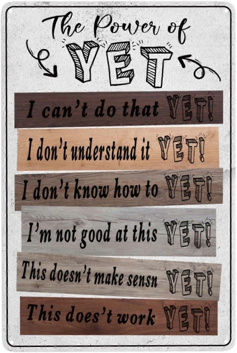 Wall Art Metal Signs School Decorative Retro Aluminum SignThe Power Of Yet Vintage Cute Painting Posters Iron Poster For Size: 12 x 8 Inches