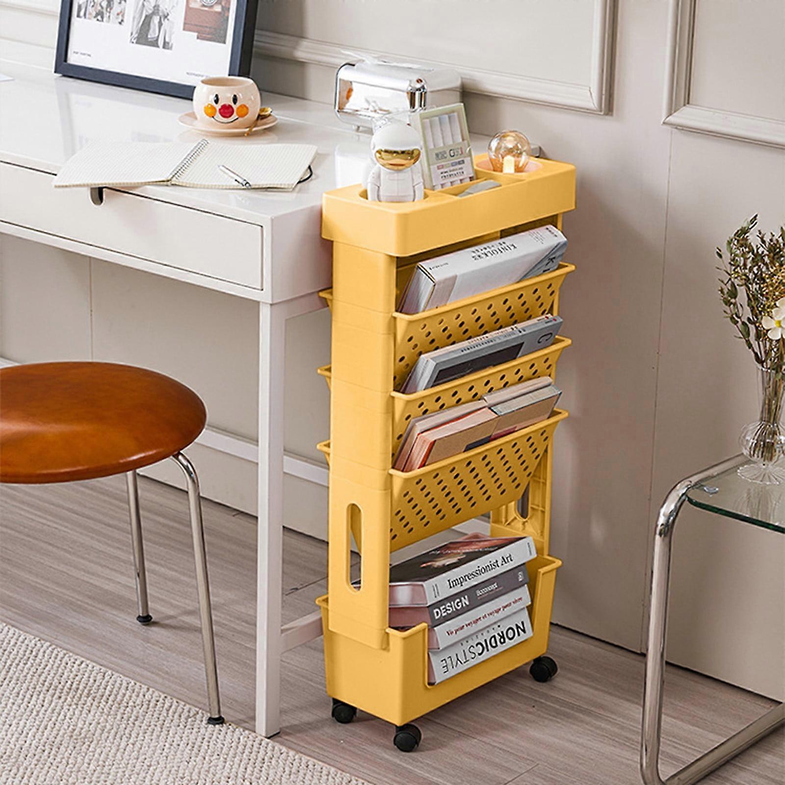 Cailmei Movable Classroom Desk Book Storage Rack Trolley Multi-Layer Stationery Storage Rack Books Bookshelf Yellow Free Size