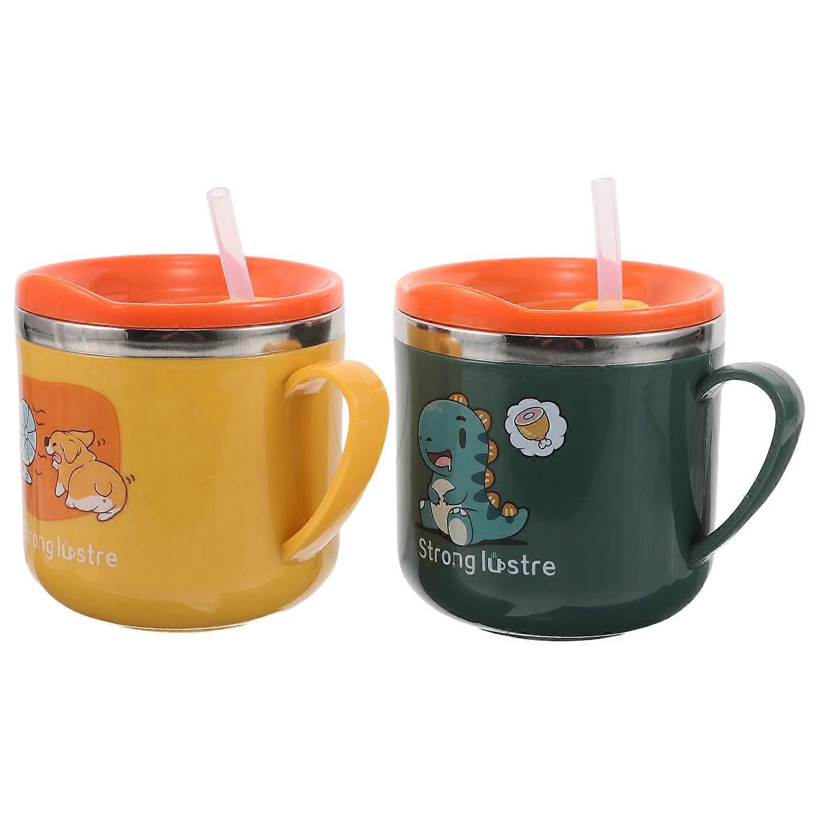 Insulated Cup With Straw 2Pcs Stainless Steel Kids Cups Cartoon Design For School Outdoor Home Use