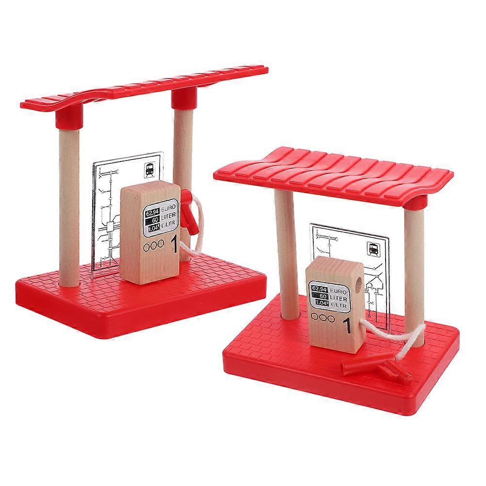Wooden Train Track Accessories for Pretend Play 2Pcs Gas Station Scenery Toy