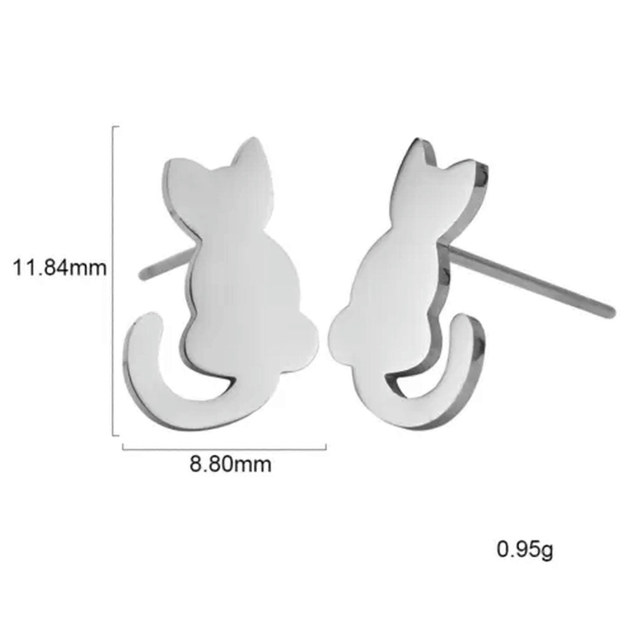 RSAMD Lovely Cartoon Animal Earring Stainless Steel Silver Color Ear Stud for Girls-02#(cat)