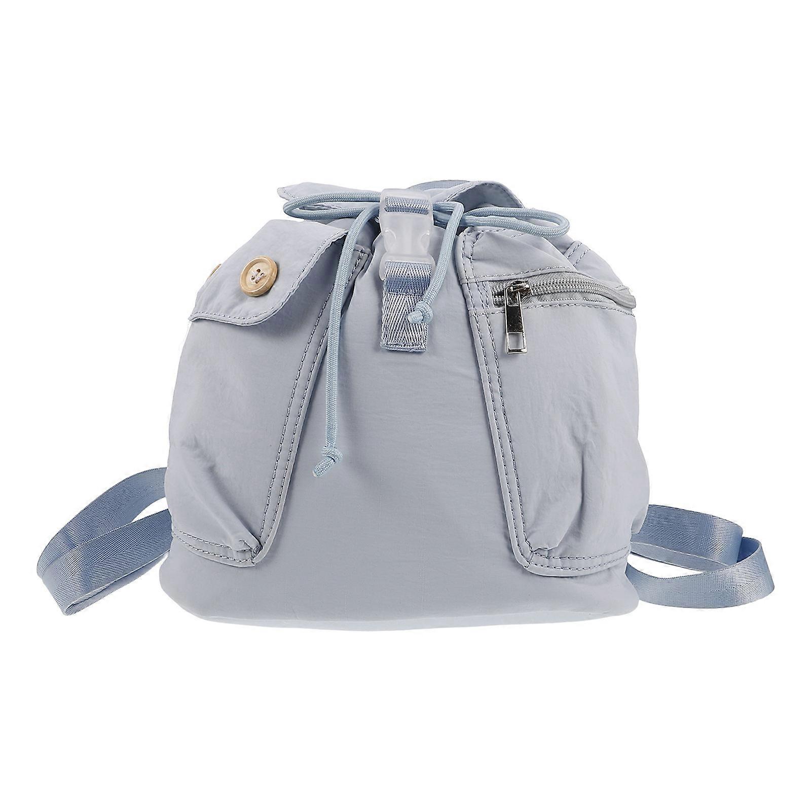 Sky Blue Drawstring Sports Backpack for Women with Pocket Button