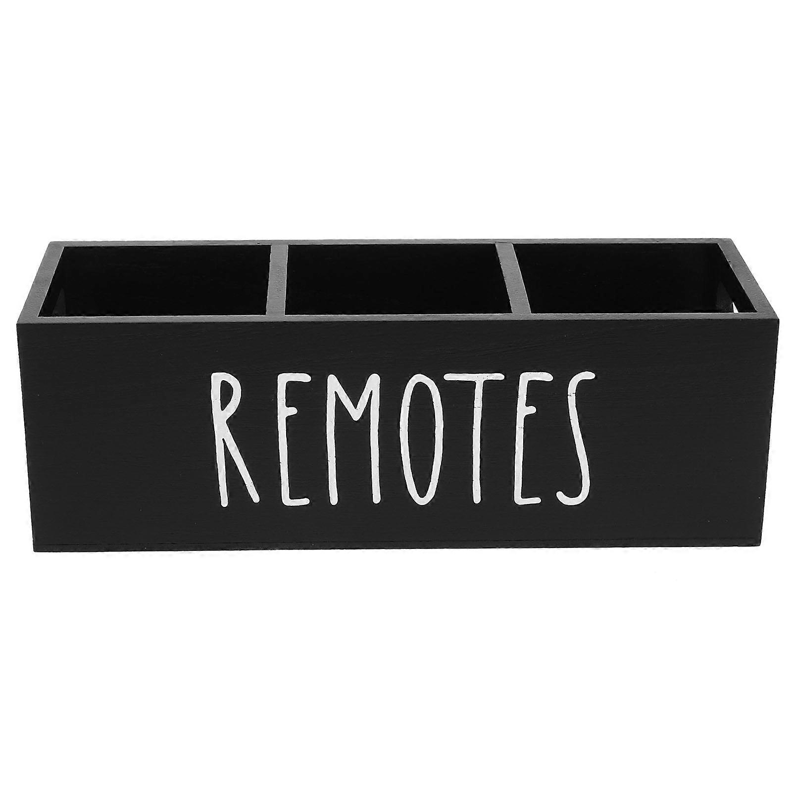 Farmhouse Wood Media Organizer Tray Rectangular Shape Black Color Bedroom 25.50X8.60X8.60CM Spacesaving Solution 1Set