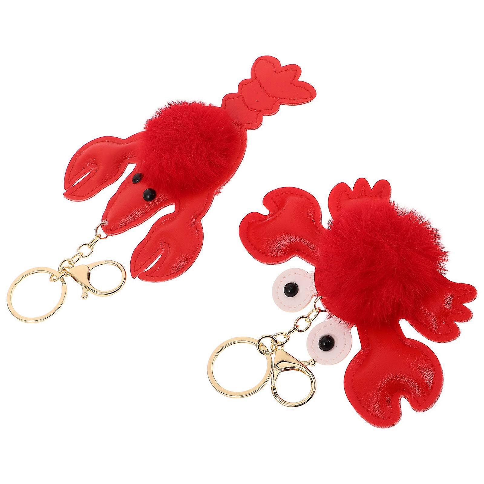 Red Plush Keychain Lobster and Crab for Decor with 2Pcs Ocean Animal Toys