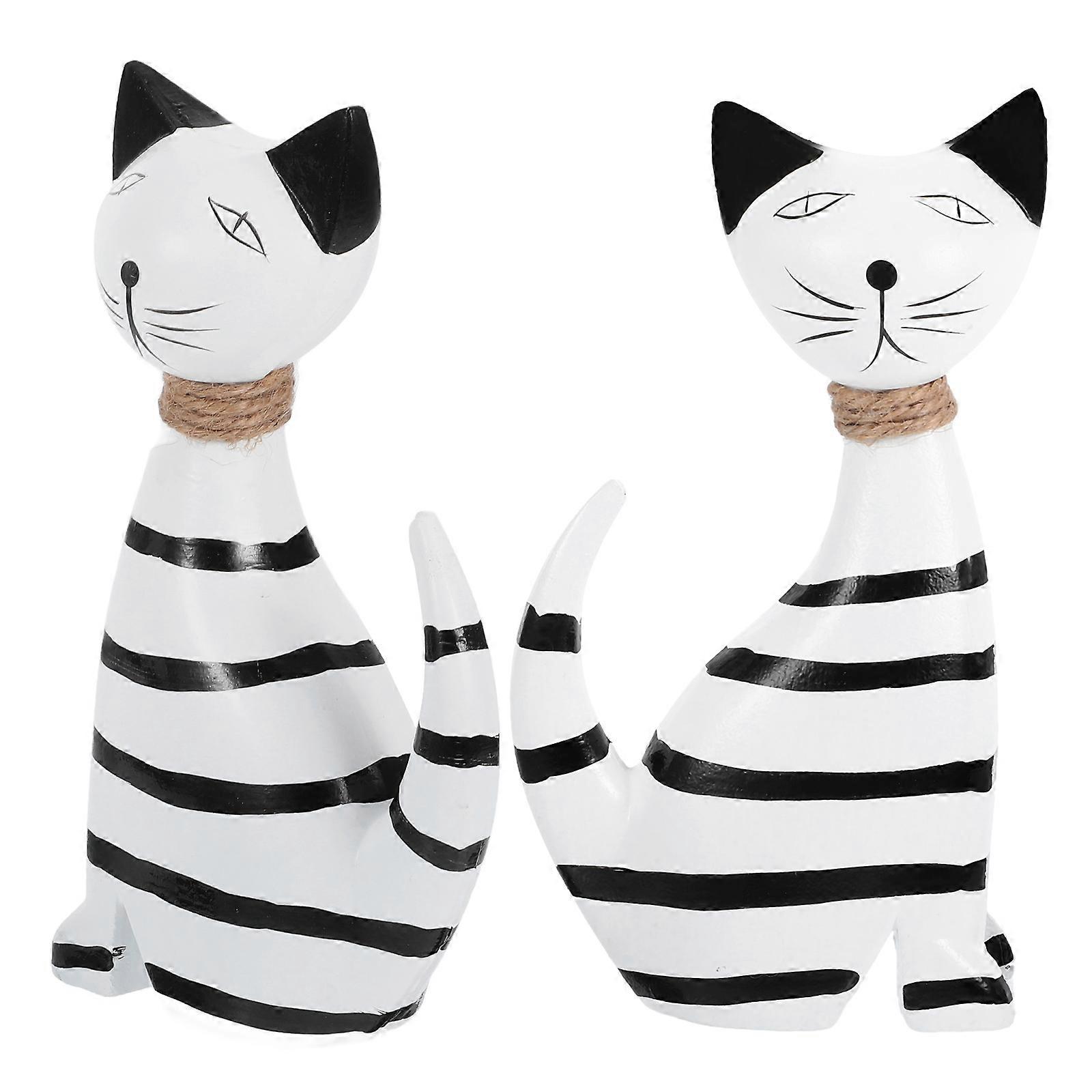 Handmade Wooden Cat Figurines for Desktop Decor 2Pcs Nordic Style