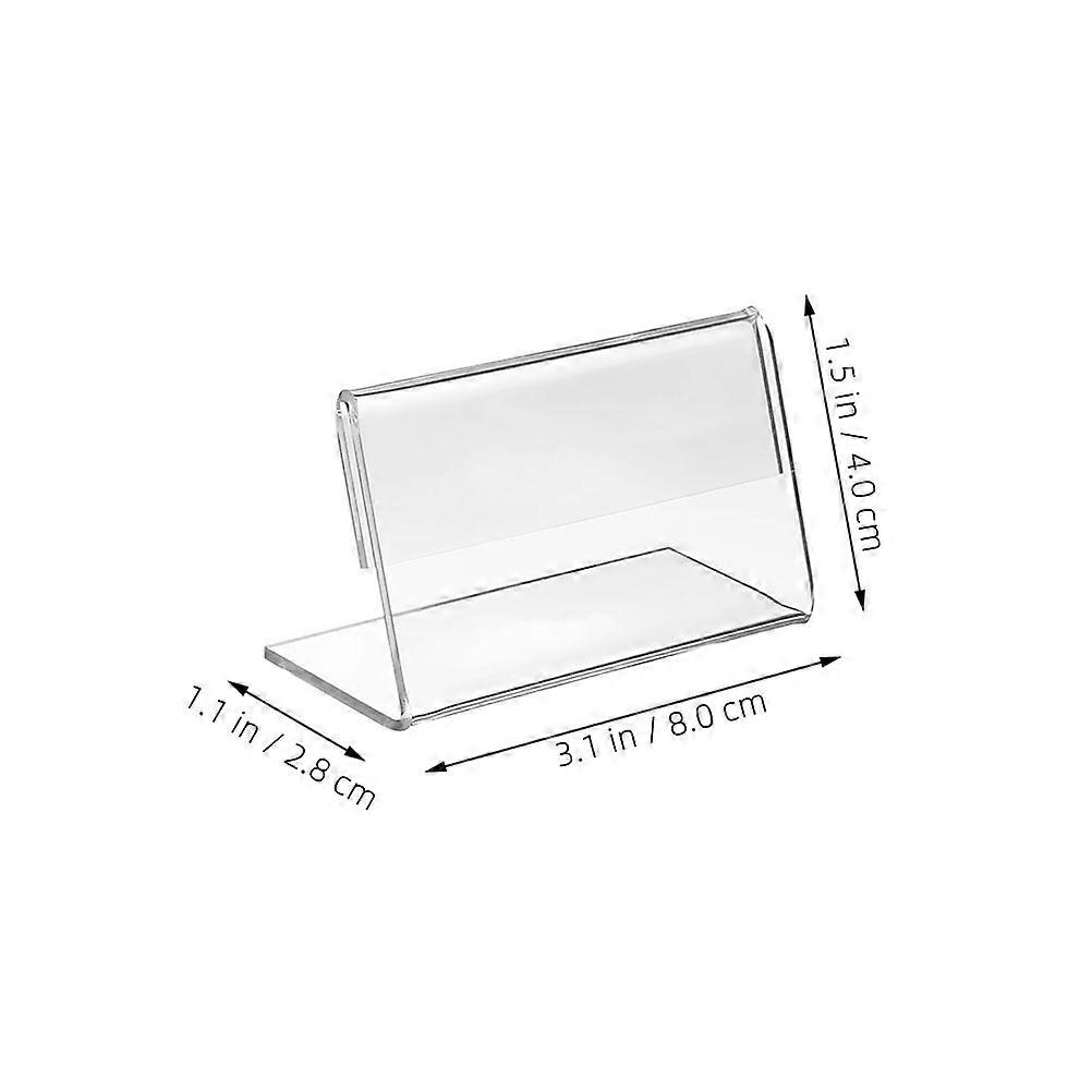 Enhance your product displays with this transparent L-shaped tag holder. Designed for tabletop use, it is for showcasing of various items such as handbags, , and other accessories. The clear construction provides a sleek and modern appearance, making it easy for customers to read the . Just slide the tag into the holder and position it on your display shelf. Features -Color:Transparent -Material:Acrylic -Size:8.00X4.00X2.80cm/3.14X1.57X1.10in -Clear visibility: the acrylic material ensures high transparency, making product easy to read and enhancing the overall display - l shape: the l shaped structure offers strong support and stability, reducing the risk of the stand falling over during use -Multipurpose: ideal for use in homes, offices, and retail environments, it helps organize small items like stationery, jewelry, and other retail products -Modern design: its sleek and modern design makes it suitable for various commercial settings, including malls, supermarkets, and trade shows -Efficient tag changes: designed for quick and easy tag changes, it helps maintain an efficient workflow and keeps displays current Package list: 30 x acrylic sign holders
