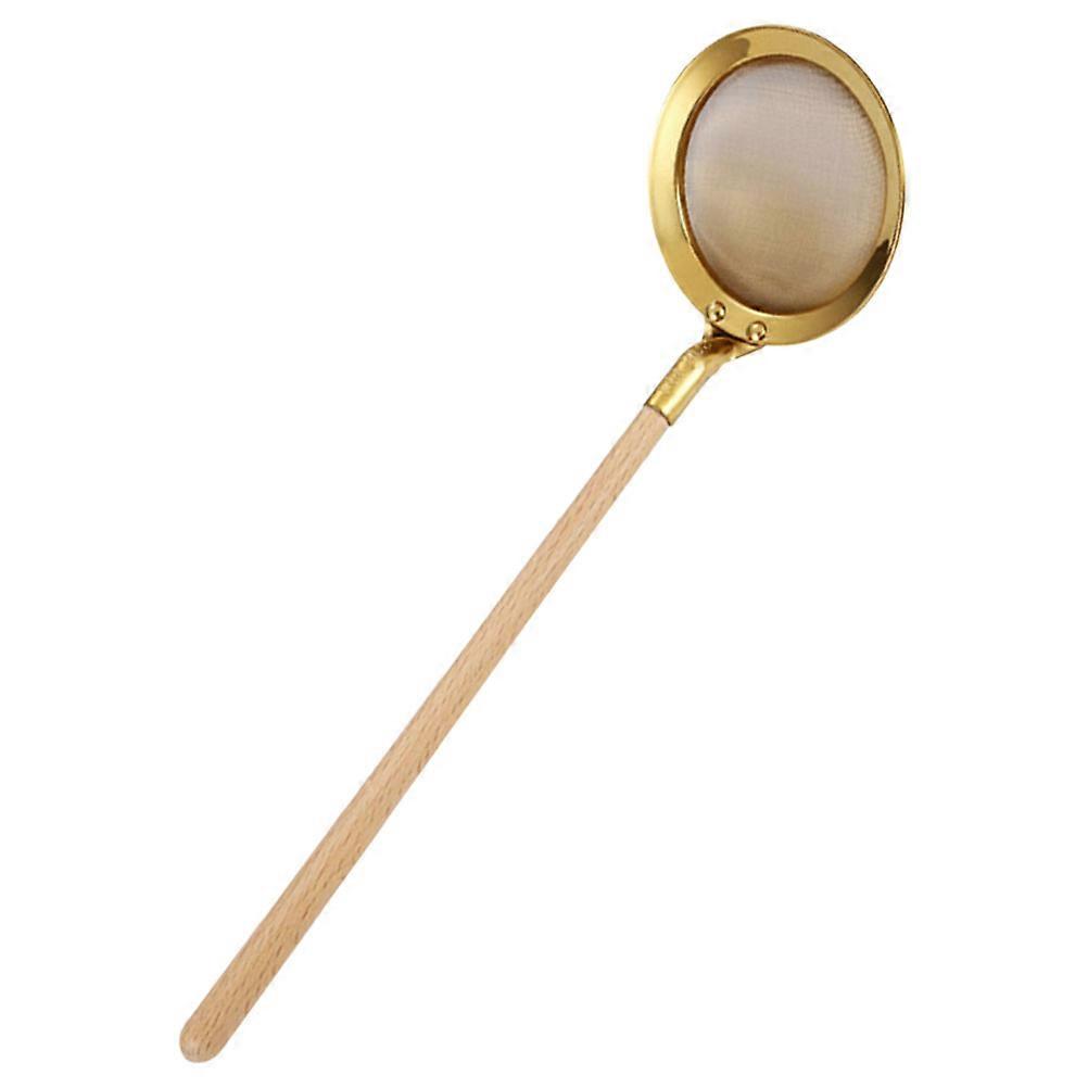 Golden Wooden Handle Skimmer Spoon for Cooking Stainless Steel