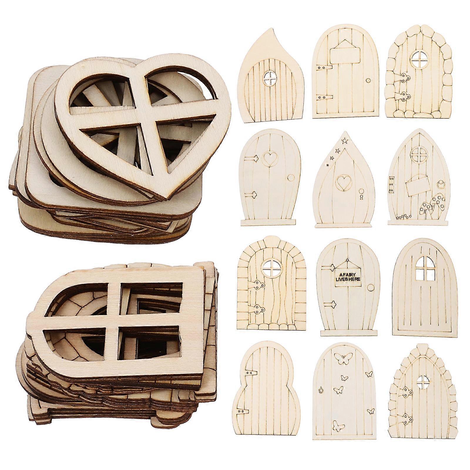 Fairy Door Wooden Fairy Doors for Decoration 96Pcs Unpainted Wood Set