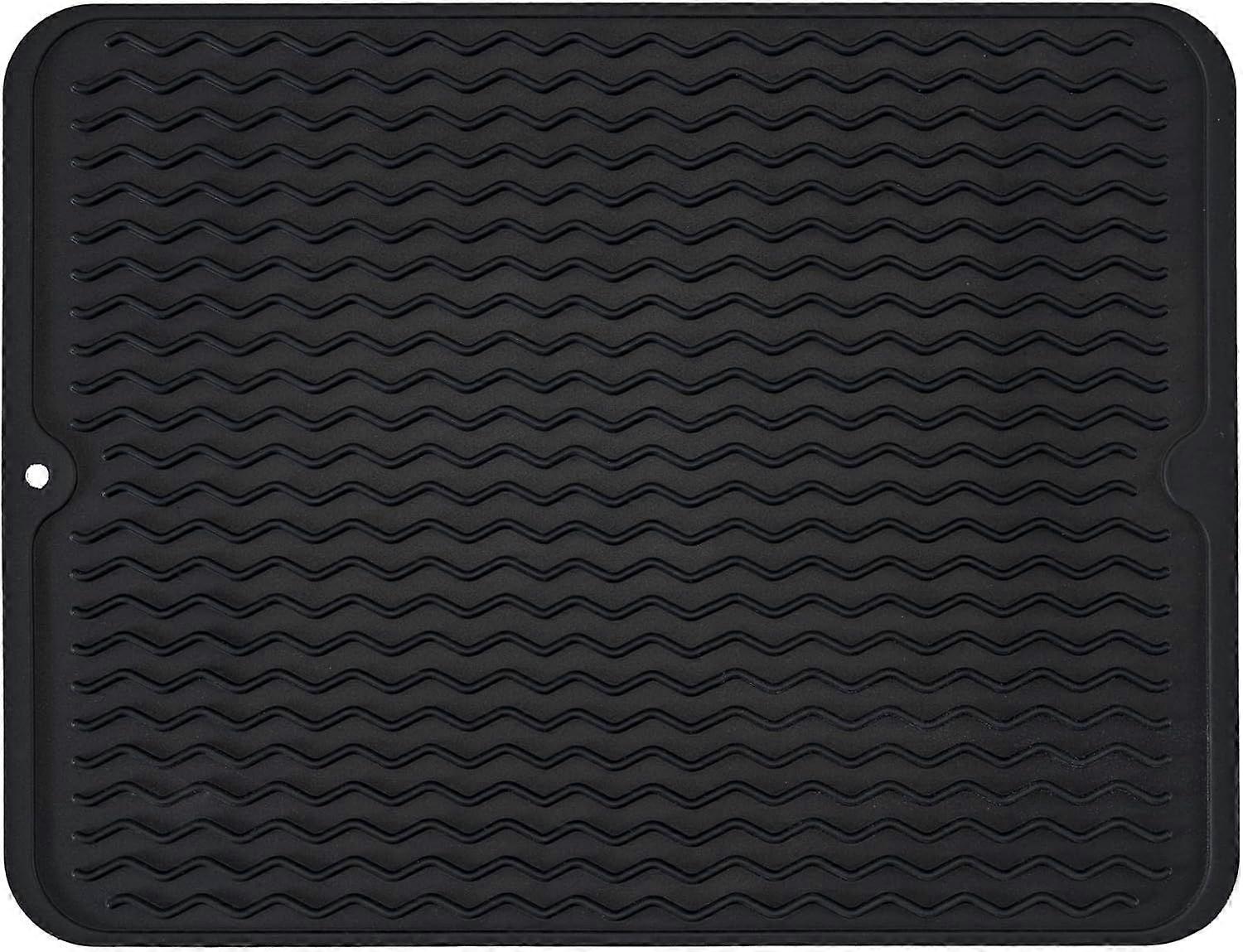 Silicone dish mat, non-slip and easy-to-clean sink mat, large heat-resistant dish rack mat for kitchen countertop, sink, refrigerator or drawer (