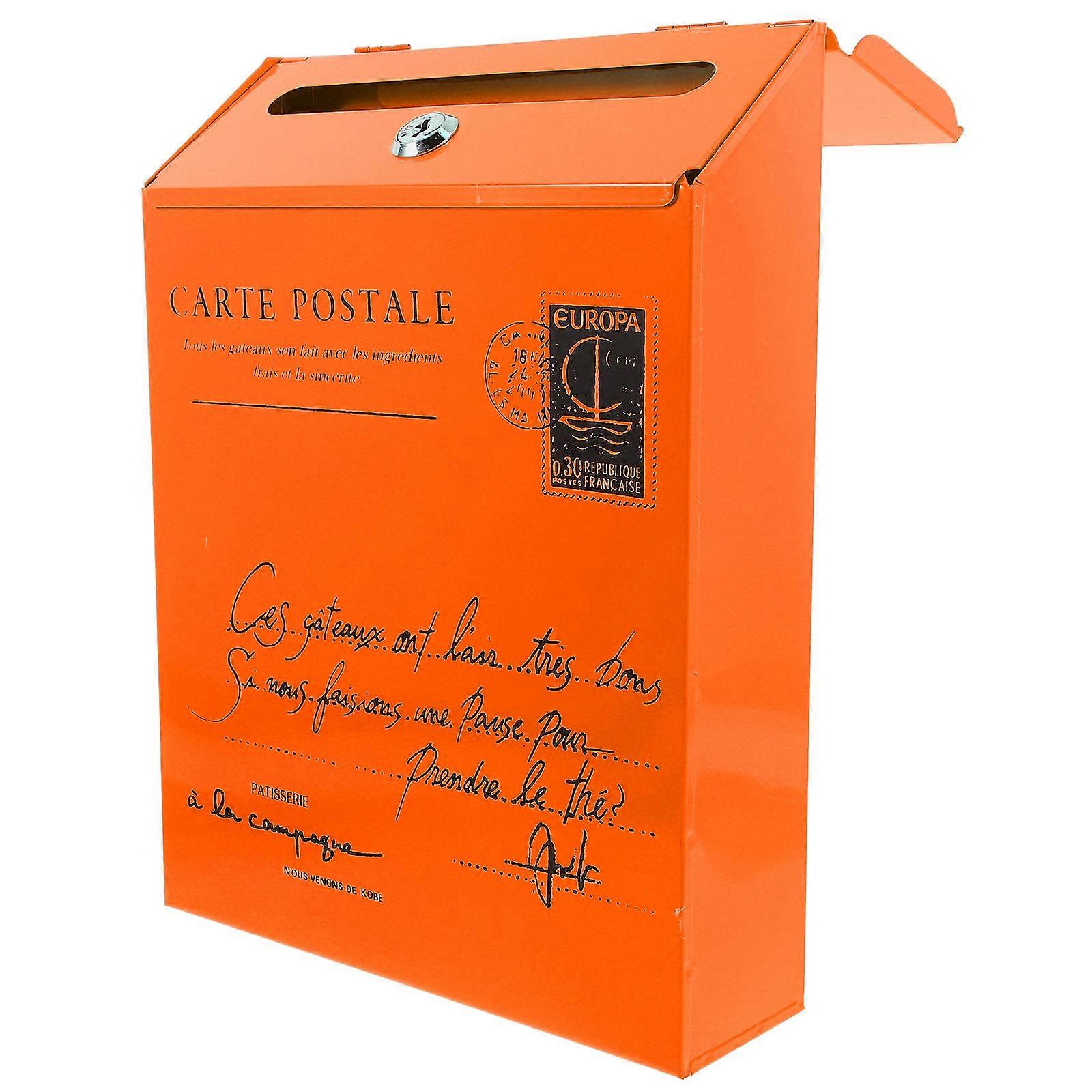 Iron Vintage Mailbox for Letter with Lock Orange Wall Mounted