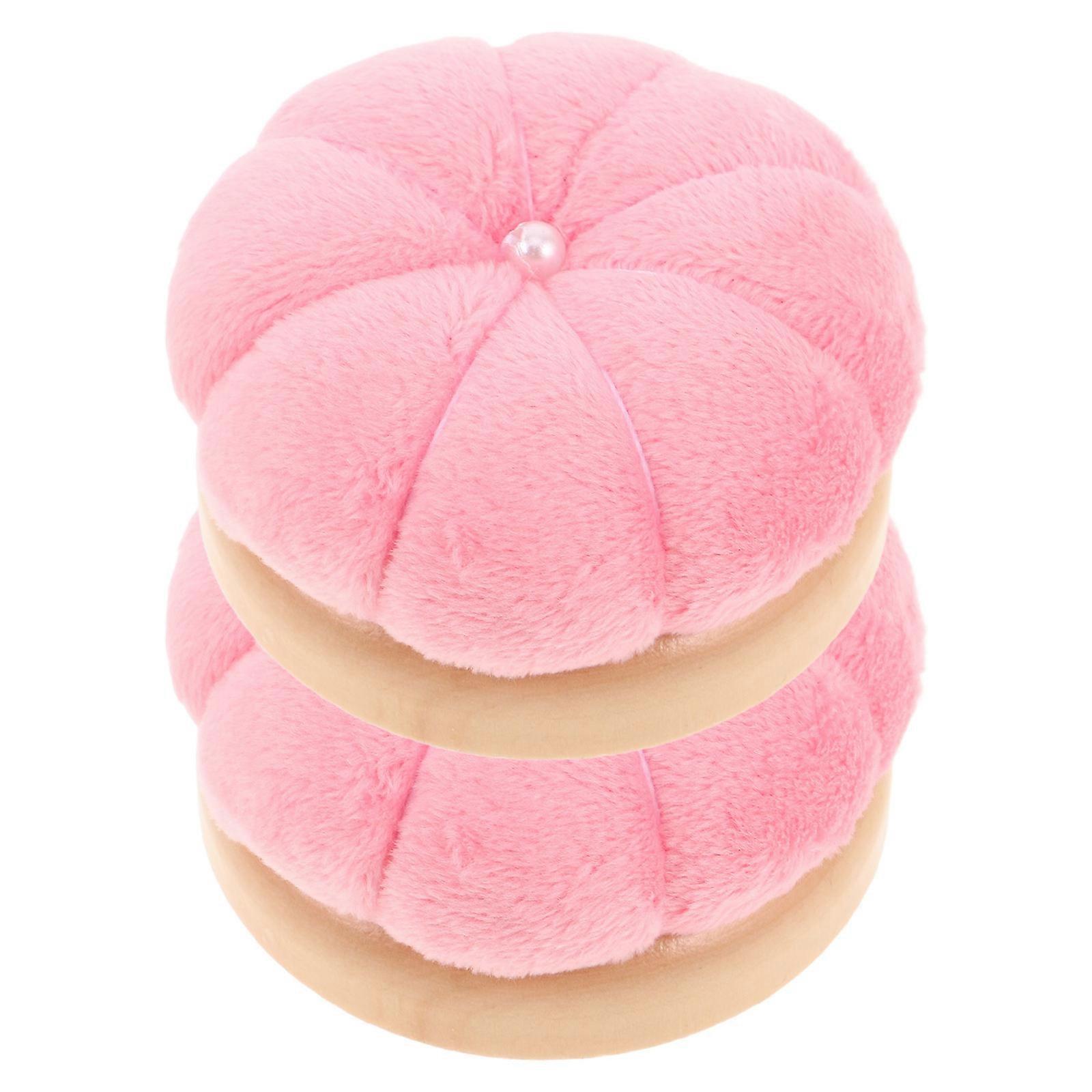 Round Pin Cushion Wooden Base Needle Holder for Sewing 2Pcs Pink Design