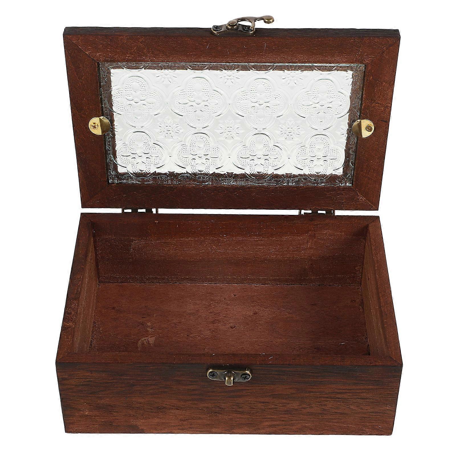 Wooden Jewelry Box with Glass Lid for Storing Jewelry in Dark Brown Color Multifunctional Vintage Style Home Decor 6.5 x 4.5 x 3 Inches