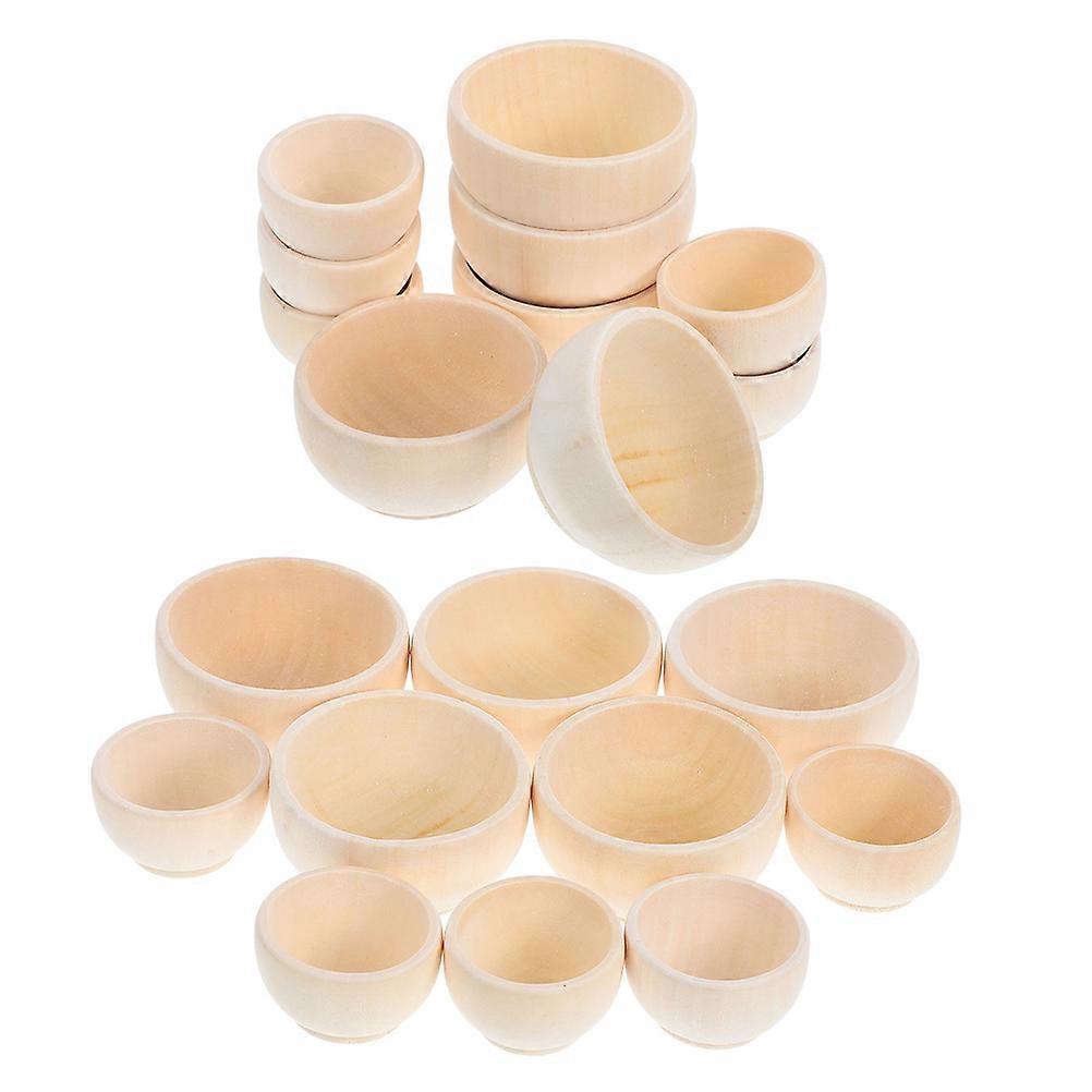 Unfinished Wooden Bowls Miniature Tableware Set For Diy Craft Dollhouse Projects 5.70X5.70X3.00CM Beige Round Shape 20Pcs