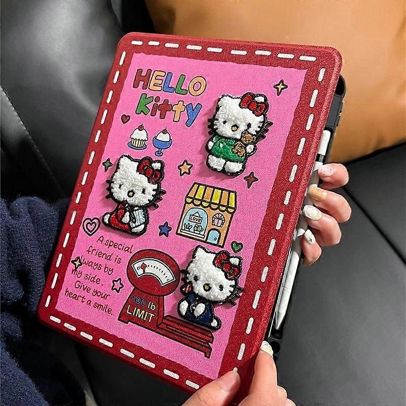 Rose red embroidery Hello Kitty kt suitable for compatible with iPad pro protective cover Air5/4 female 9.7 inch cartoon 10th generation mini6
