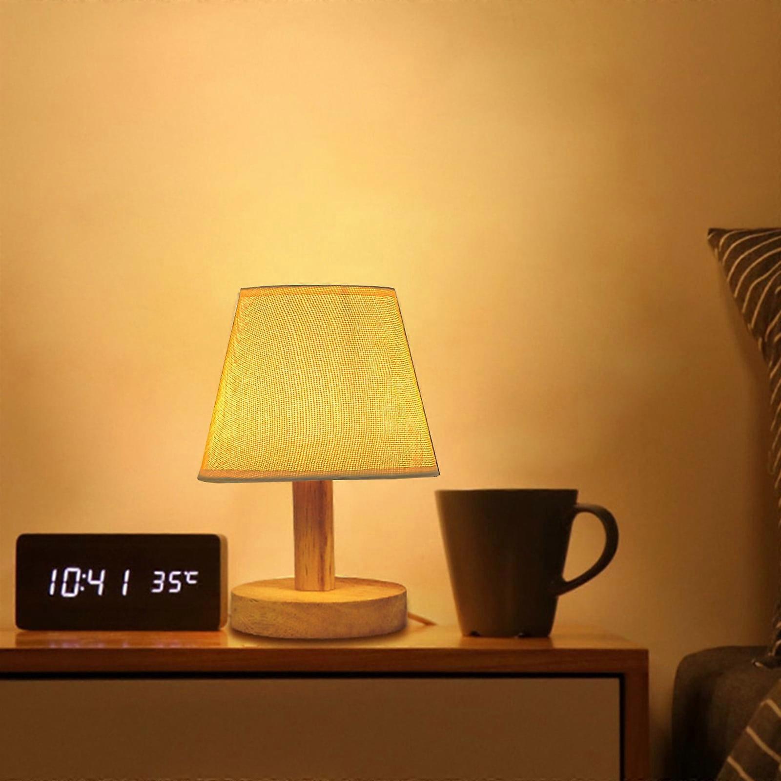 WJSXC 3-Way Dimmable Table Lamp with Flaxen Fabric Shade, Solid Wood Nightstand Lamp for Bedroom, Living Room, Office, LED Bulb Included