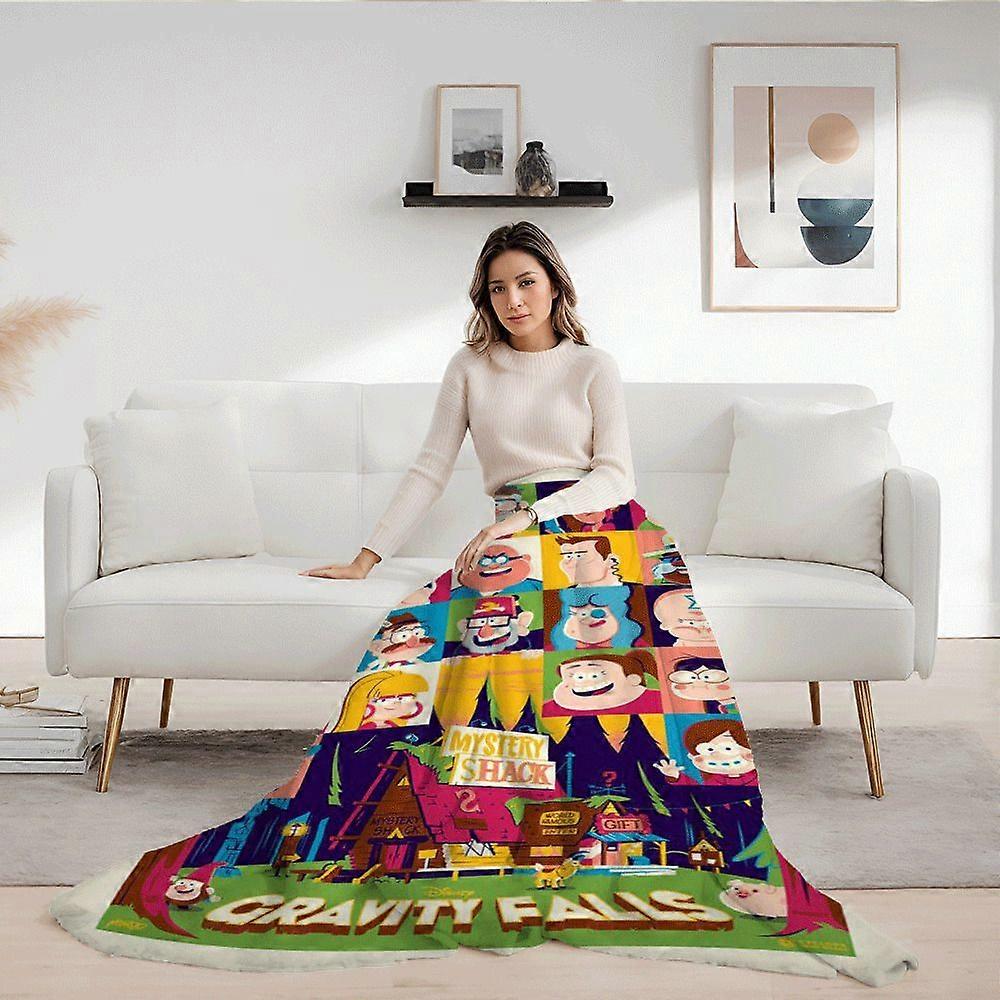 Gravity Falls Characters and Mysterious Cabin Illustration High-Definition Digital Print Flannel Blanket - Perfect Birth-LAMGD441