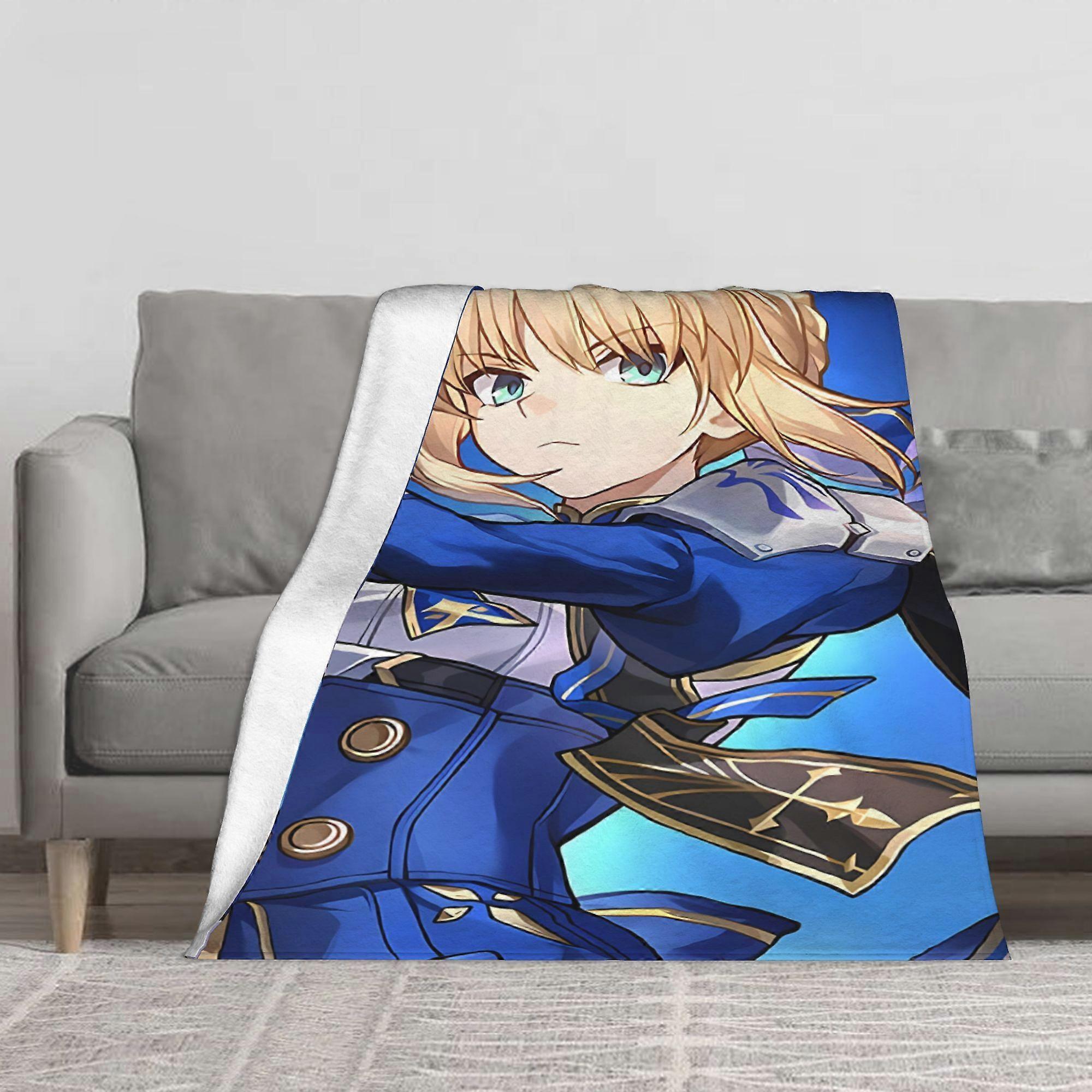 Artoria Pendragon Anime-Style Flannel Blanket - Soft All-Season Throw with Vibrant Character Design, Machine Washable, P-PLAQJ231