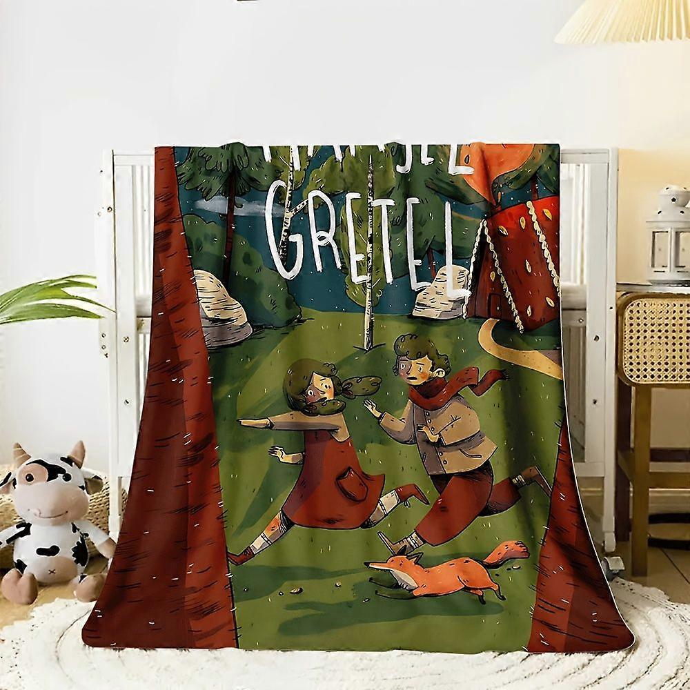 1pc Hansel & Gretel Flannel Blanket - Soft Smooth Texture, Warm Cozy All-Season Throw with Forest Scene & Gingerbread Ho-PLAQJ334