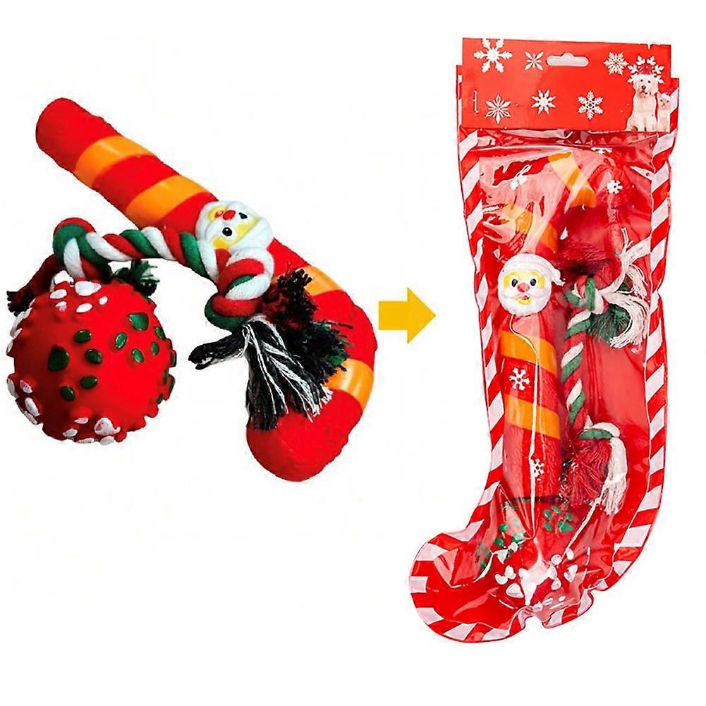 Cat Dog Christmas Stocking Set with Toys - Assorted Squeaky Dog Boot, Bone, Rope & Ball - Fun Holiday Gift for Pets