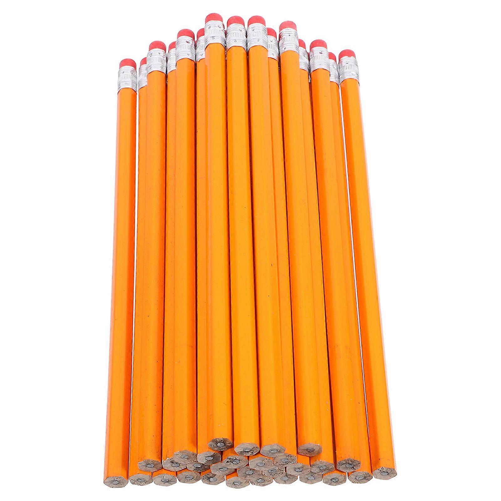 Orange Wood pencils with Erasers for Writing Use Bulk Unsharpened Long pencils 100pcs