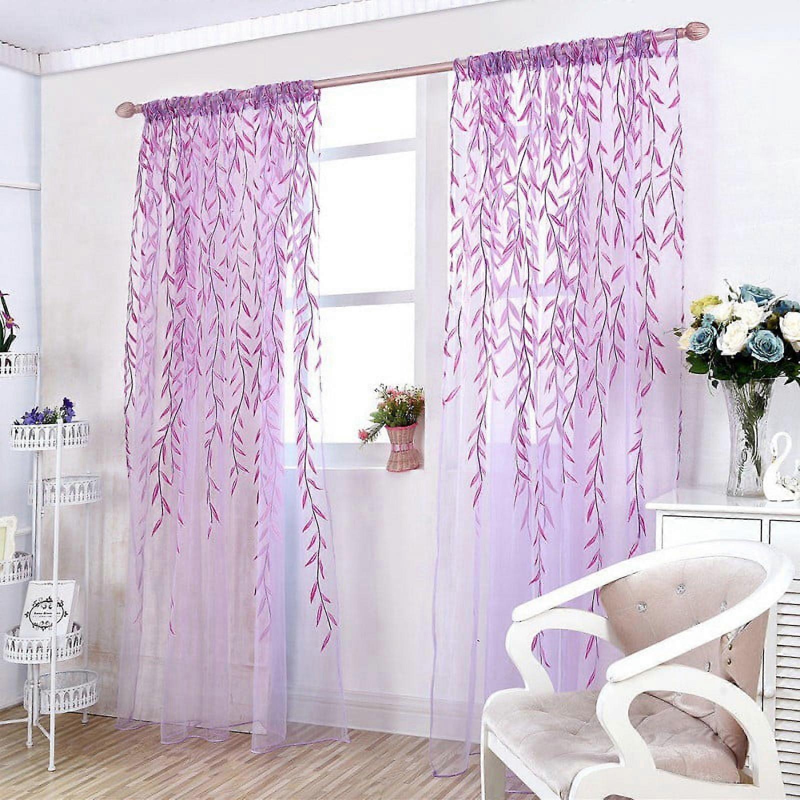 2 Pieces Willow Voile Tulle Room Window Curtain Sheer Voile Panel Drapes Curtain 39.4" x 78.8",Purple