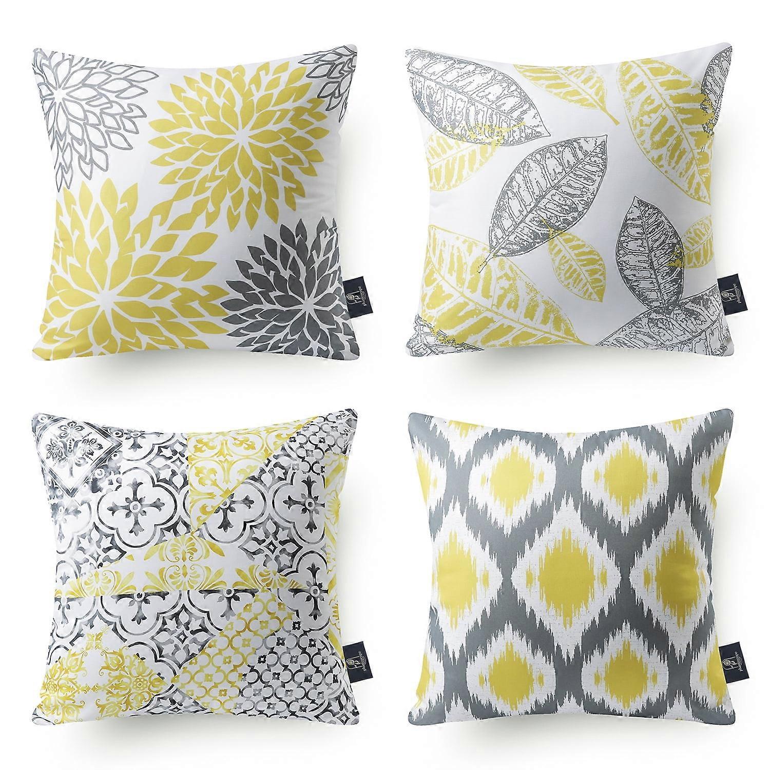 Phantoscope New Living Series Duplex Printing Decorative Throw Pillow Covers, 18" x 18", Yellow and Gray, Set of 4