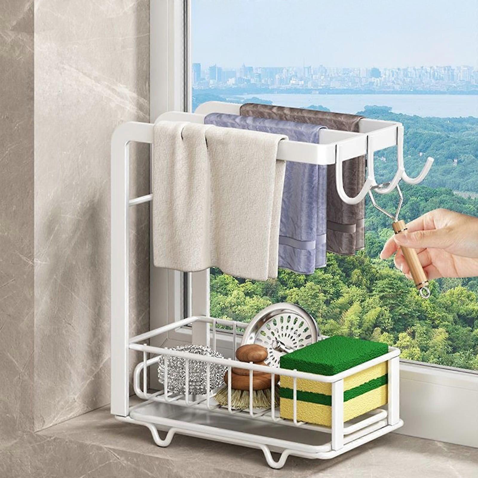 Txmfgh Multifunctional Kitchen Rag Rack & Storage Shelf with Sponge Drainer, Stainless Steel, Easy Access, for Kitchen or Bathroom, White/Black