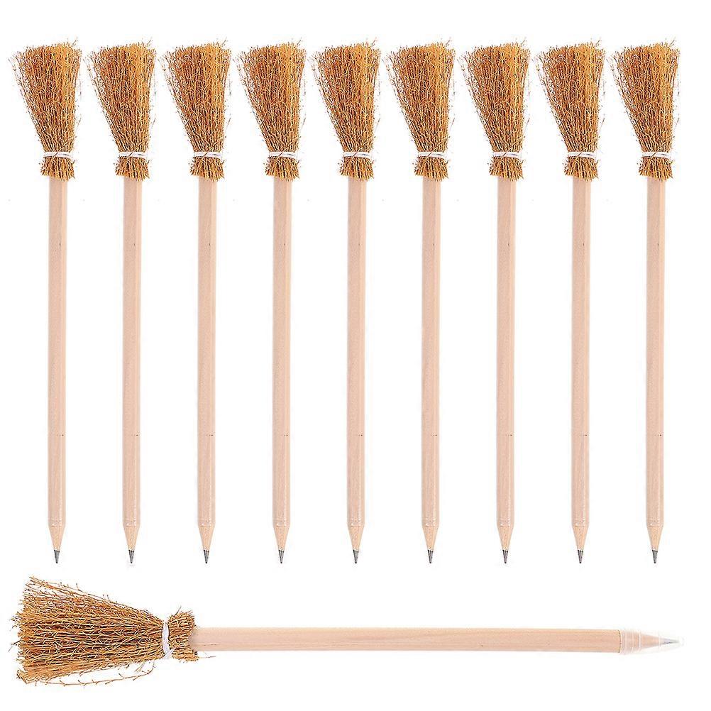 Worgeous Halloween Witch Broom Pens 12pcs Wooden Writing Pencils Pocket Size Portable for Students and Toddlers