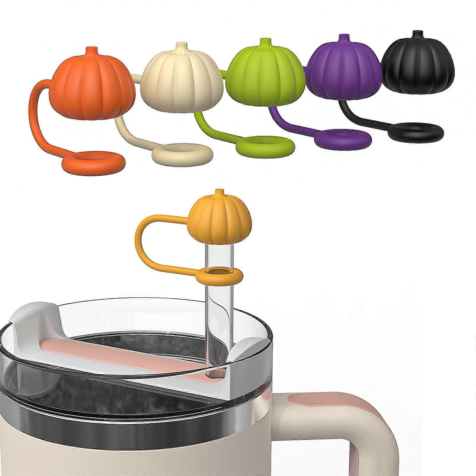 5Pcs Fall Straw Covers Orange Pumpkin, Reusable 10mm Lid for 30/40oz Tumblers, Compatible with Thanksgiving & Christmas Home Decor