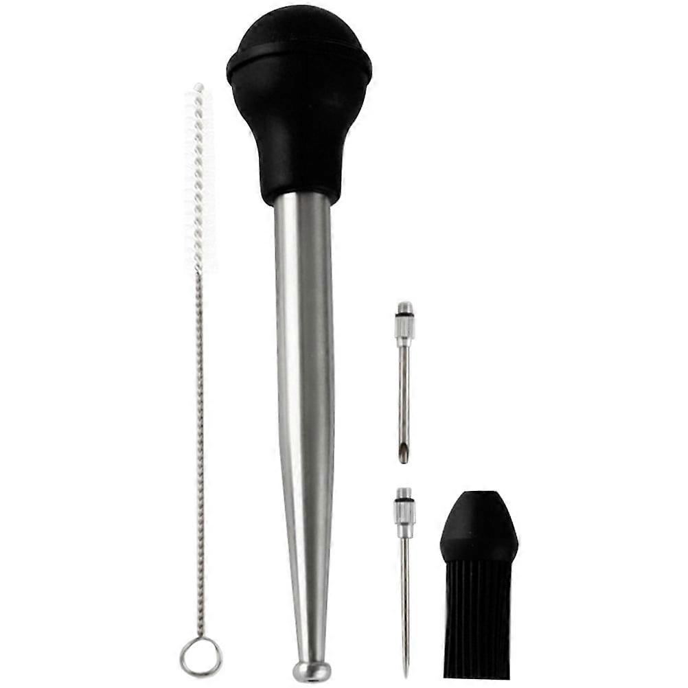 Description Seasoning tool for turkey or steak. Put the seasoning into the dropping tube and inject it. This Silicone Baster is also called turkey needle. Silicone Baster is made in food grade and is absolutely safe and hygienic. Premium and healthy material, you can use it with confidence. Features - Color: Black -Material:Stainless steel and silicone - Size: 27.20X5.70X5.70cm/10.69X2.24X2.24in -The baster kit is made of food grade silicone and stainless steel, which can be safe to use. -Basting tube has high flexibility and can generate strong suction. It can easily collect the gravy and butter in the hot pan. -This baster kit is detachable and can be cleaned in the dishwasher, and the included cleaning brush is designed to fit the entire length of the tube and is easy to clean. -The marinade can be injected directly in the meat with the needle, inserting the marinade injector directly into the meat lets the spices get deeper into the product and disperse equally. -The meat injector is perfect for intensifying the flavor of brisket, pork, chicken, turkey, lamb, goose, , and more. The baster kit is made of food grade silicone and stainless steel, which can be safe to use. Basting tube has high flexibility and can generate strong suction. It can easily collect the gravy and butter in the hot pan. This baster kit is detachable and can be cleaned in the dishwasher, and the included cleaning brush is designed to fit the entire length of the tube and is easy to clean. The marinade can be injected directly in the meat with the needle, inserting the marinade injector directly into the meat lets the spices get deeper into the product and disperse equally. The meat injector is perfect for intensifying the flavor of brisket, pork, chicken, turkey, lamb, goose, , and more.