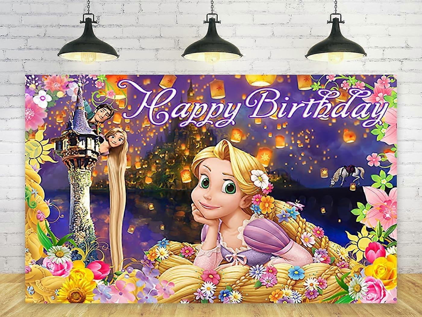Custom Princess Rapunzel Backdrop for Birthday Party Decorations Yellow Background for Party Cake Table Decorations Tangled Theme Banner 5x3ft