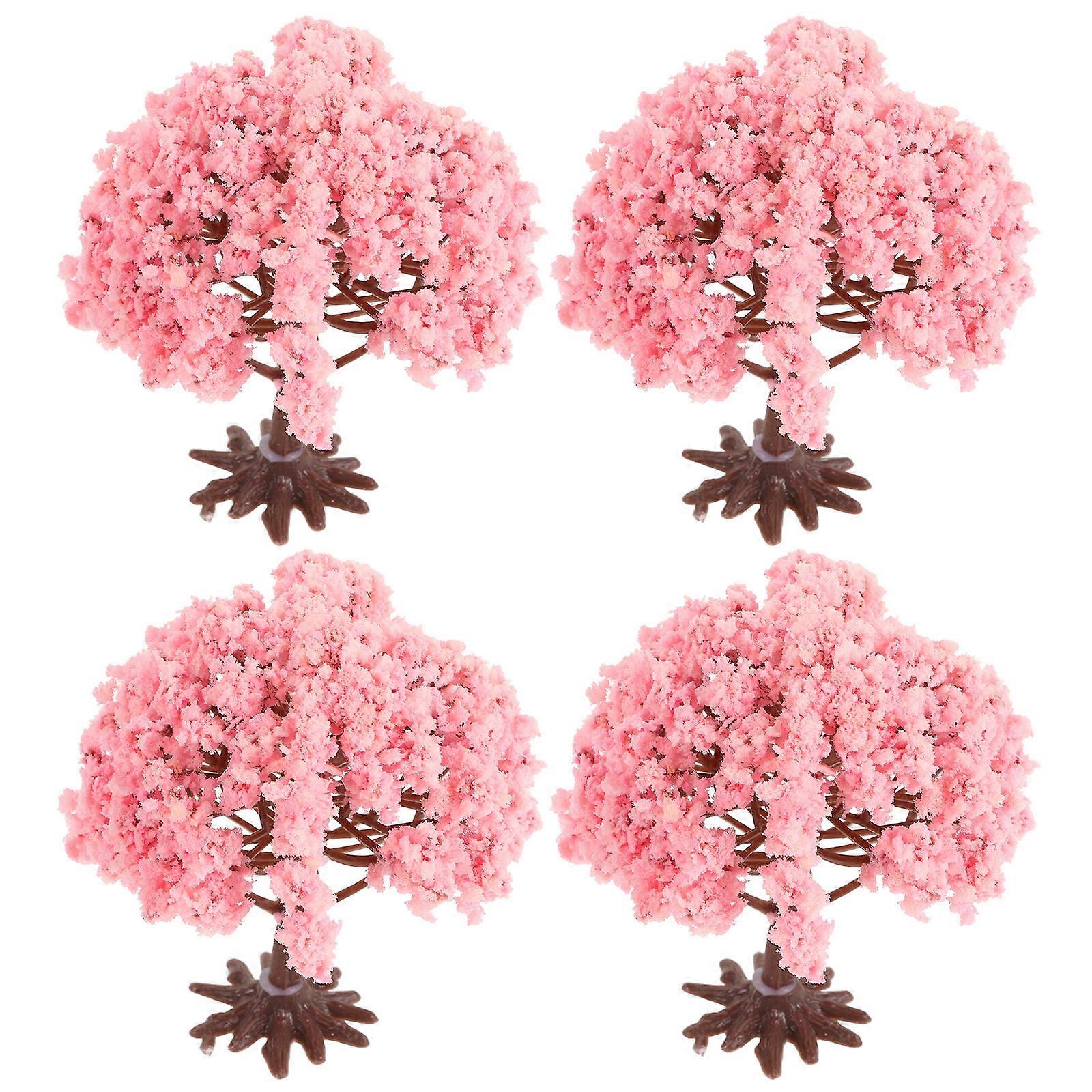 Mini Cherry Blossom Tree Model Miniature Flower Tree for Decoration 4Pcs