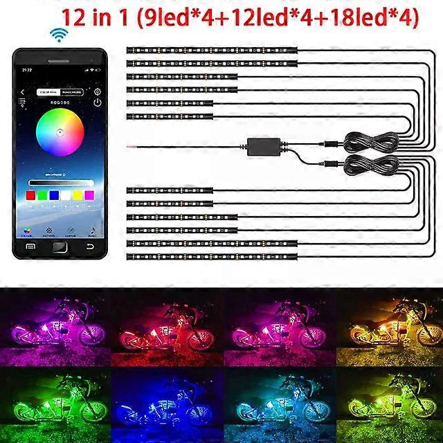 RGB LED Atmosphere Ambient Light Kit W/ APP Music Control Flexible Waterproof Neon Strip For Car Motorcycle Decorative Lamp 12V