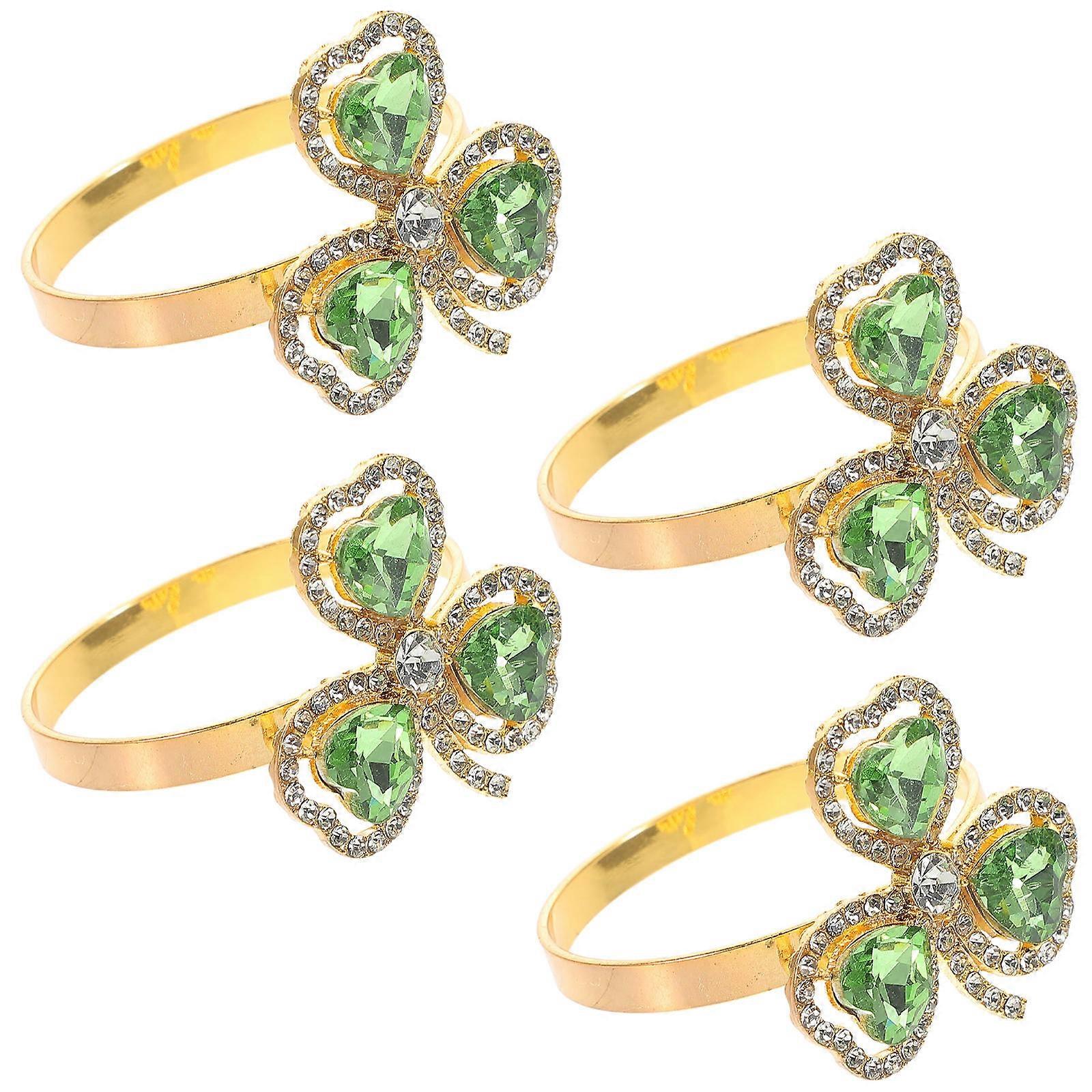 Green Irish Napkin Buttons for Decor 4Pcs Alloy Serviette Clasp Set