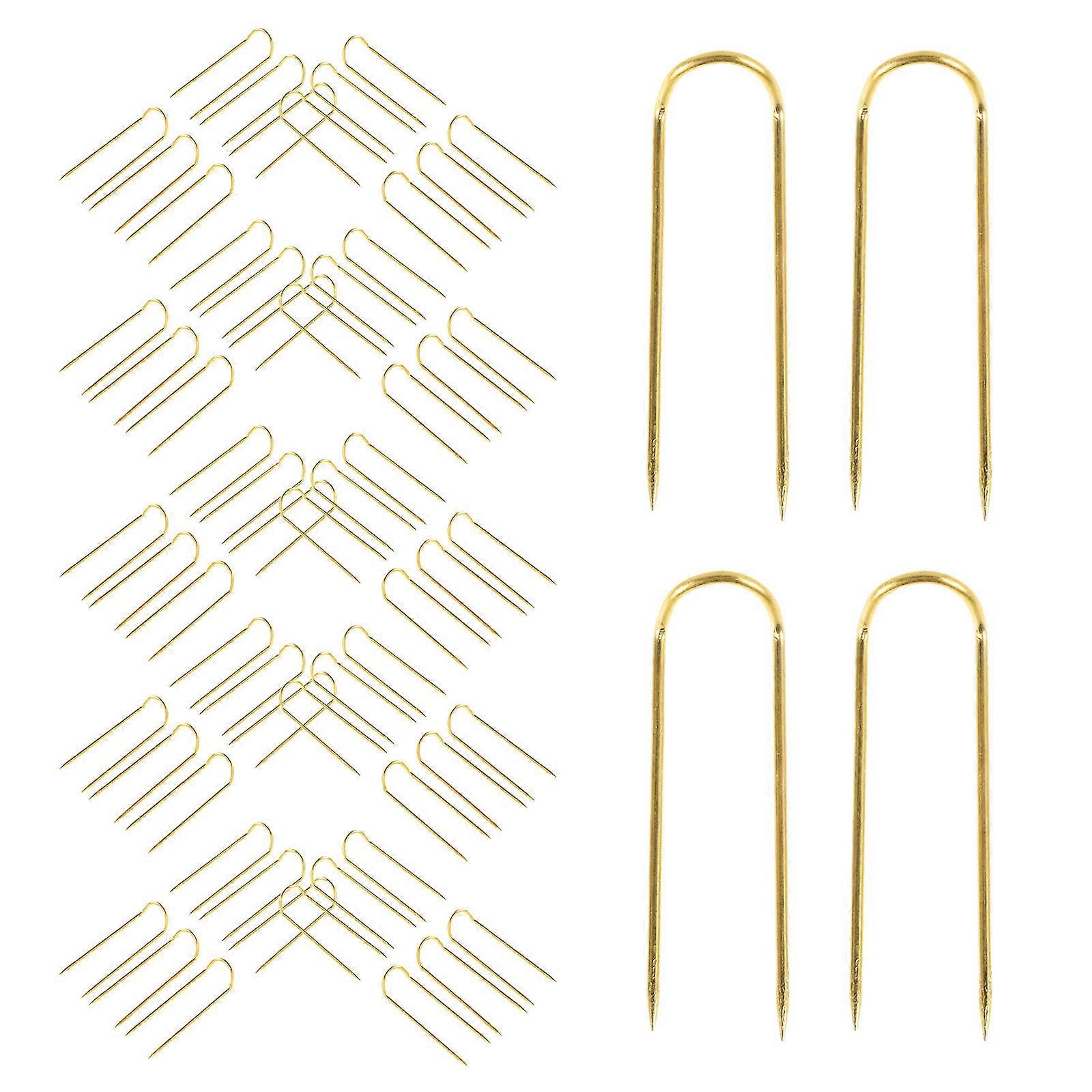 Ideal for both beginners and experienced sewers, these gold U shaped pins are versatile and reliable. They can be used for a wide range of sewing applications, including securing layers of fabric, holding patterns in place, and more. Their curved shape provides extra stability, making them a valuable addition to your sewing kit. Features -Color:Golden -Material:Metal -Size:2.30X0.70X0.30cm/0.90X0.28X0.12in -Robust metal: constructed from robust metal, these pins are designed to withstand wear , ensuring longevity -U shape advantage: the u shaped design provides a secure grip on fabric, preventing it from shifting during sewing -Dual pin security: the dual pin design offers enhanced security by holding two layers of fabric together firmly -Curved : the curved needle head facilitates easy threading, making your sewing tasks more manageable -Bulk packaging: ensures you have plenty of pins for all your sewing needs, from small repairs to large projects Package list: 100 x patchwork needles