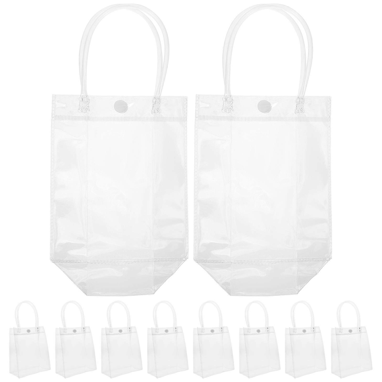 This is delicate and clear PVC gift wrapping bags with handle design, easy to grip and store items. Clear PVC gift bags are safe and excellent and can store small items. They can be used to store not only candy, but also gifts. Creative and practical in use. Features -Color:Transparent -Material:PVC -Size:16.00X13.00X7.00cm/6.29X5.11X2.75in -The clear gift bag can be used for retail, goodies, business, boutique, wedding, birthday, baby shower, party favor. -With handle design, thus they are convenient for shopping use, portable and simple to carry. -Simple transparent design, detailed workmanship and chic details, practical and elegant. -Suitable for shopping, gifts wrapping and party favors packaging, wedding, baby shower, celebrations, holiday, Christmas, DIY craft and more occasions, giving pleasant use experience. -They are easy to catch everyone's attention, you could even DIY them to add your personal style. Package list: 10 Tote Bags