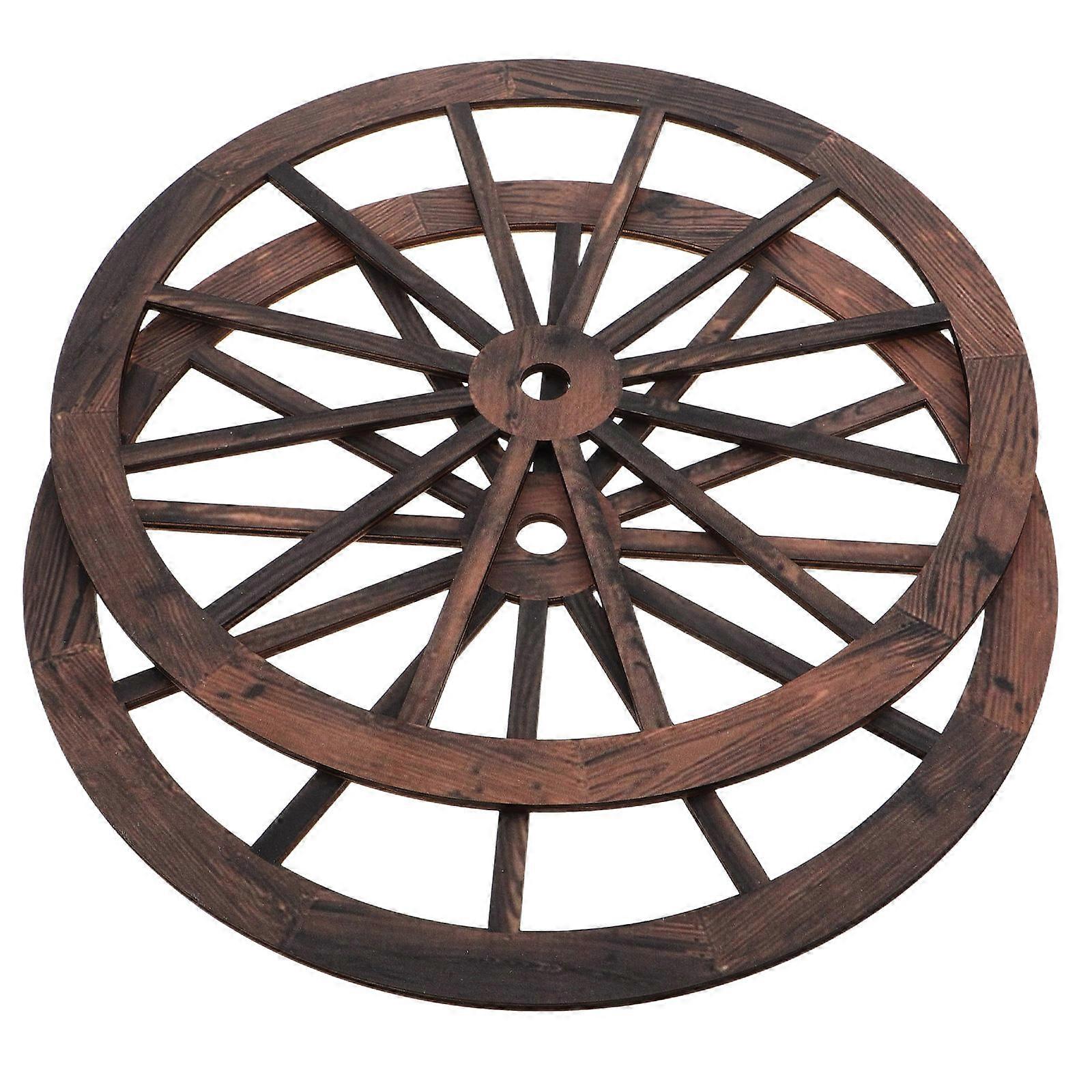 Vintage Rustic Cartwheel Wooden Wall Decor for Decoration 2Pcs Light Brown