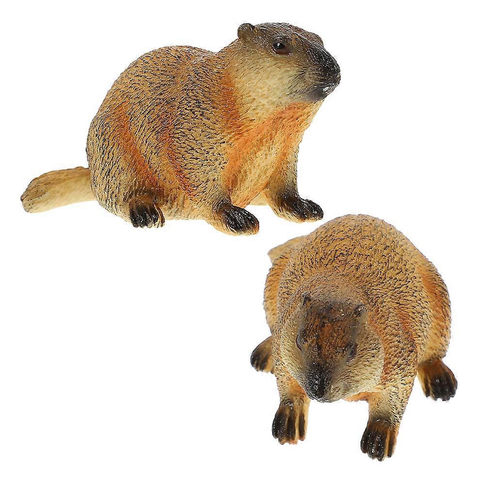Simulation Animal Figure Model Groundhog Decoration for Lawn 2Pcs Set
