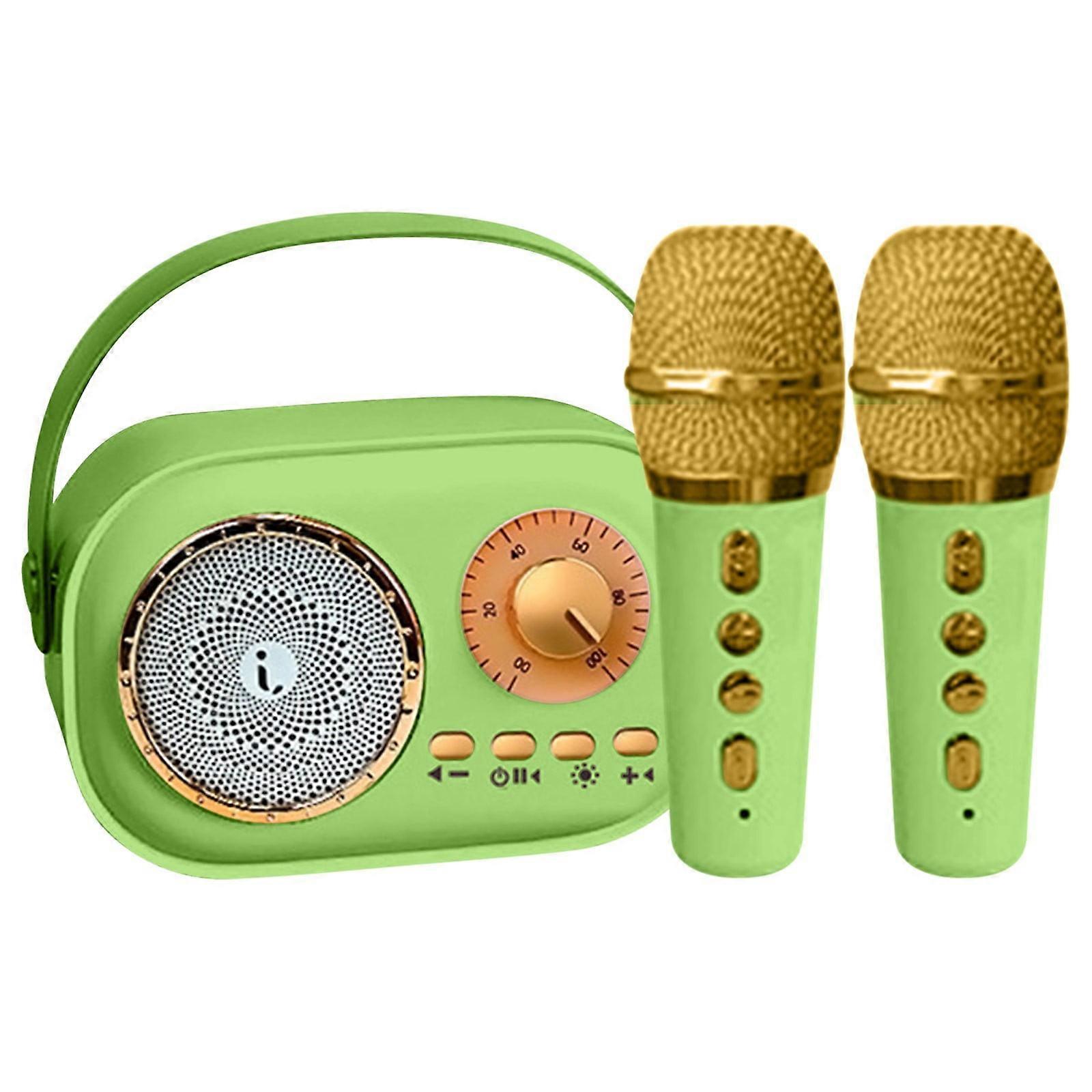 Mini Karaoke Machine with 2 Wireless Microphones, Portable Bluetooth Speaker for Kids Adults, Home Birthday Party, Ages 4-12+
