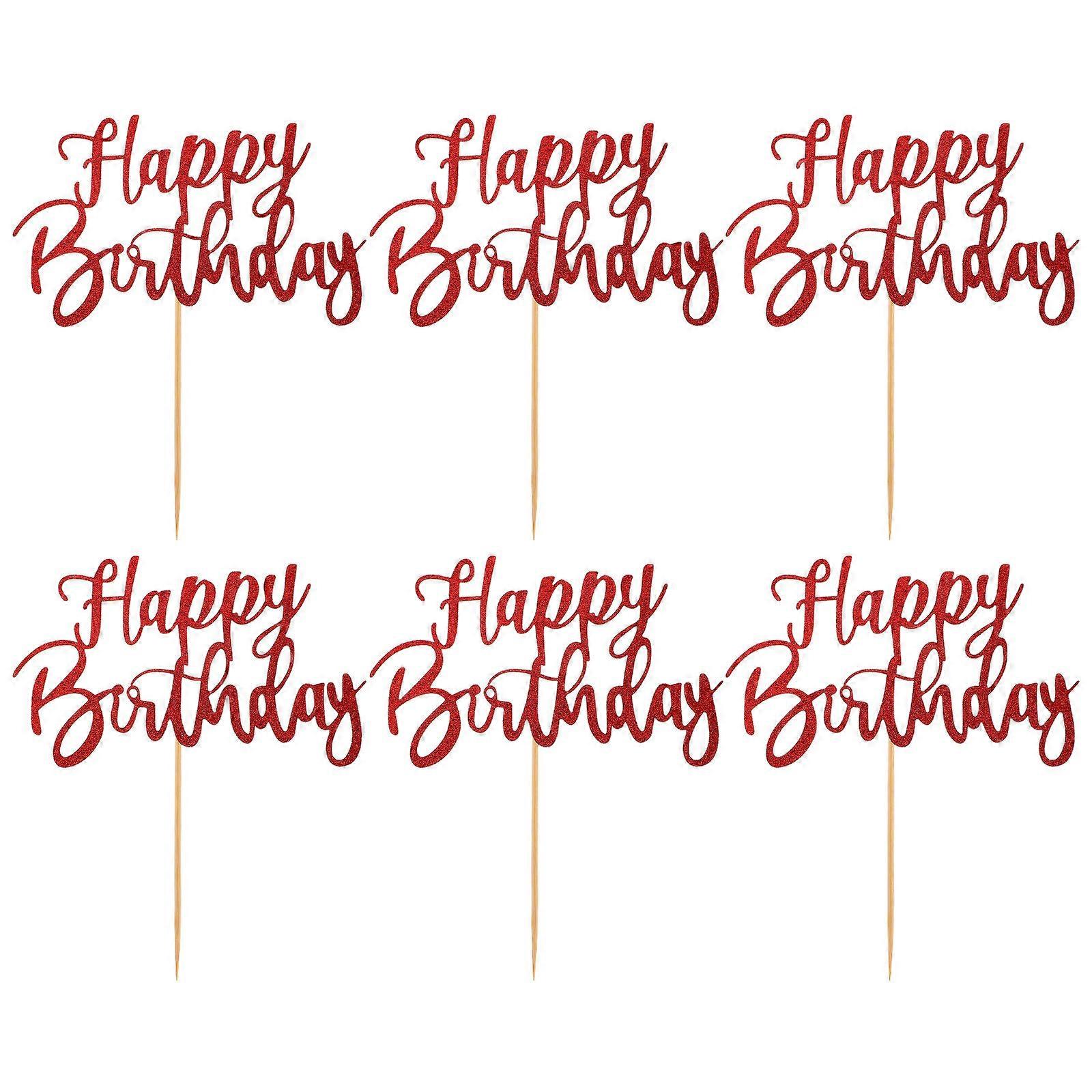 Birthday Cake Decorations Red Happy Birthday Cake Toppers for 6Pcs