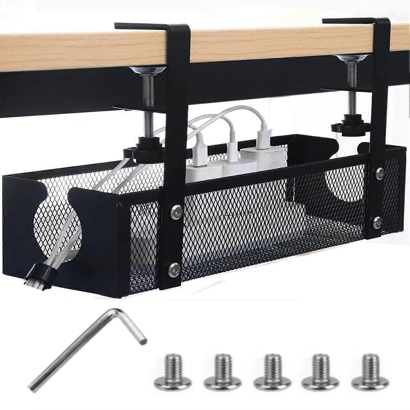 SUSUchens Office under Desk Storage Rack Large Side Opening No Drill Hollow Cable Management Tray Desk Cable Organizer PC Cord Sundries Holder White