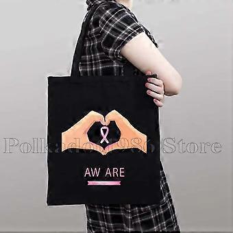 Women Breast Cancer Pink Ribbon Awareness Canvas Shoulder Tote Bag Harajuku Handbag Eco Shopper Reusable Foldable Shopping Bags