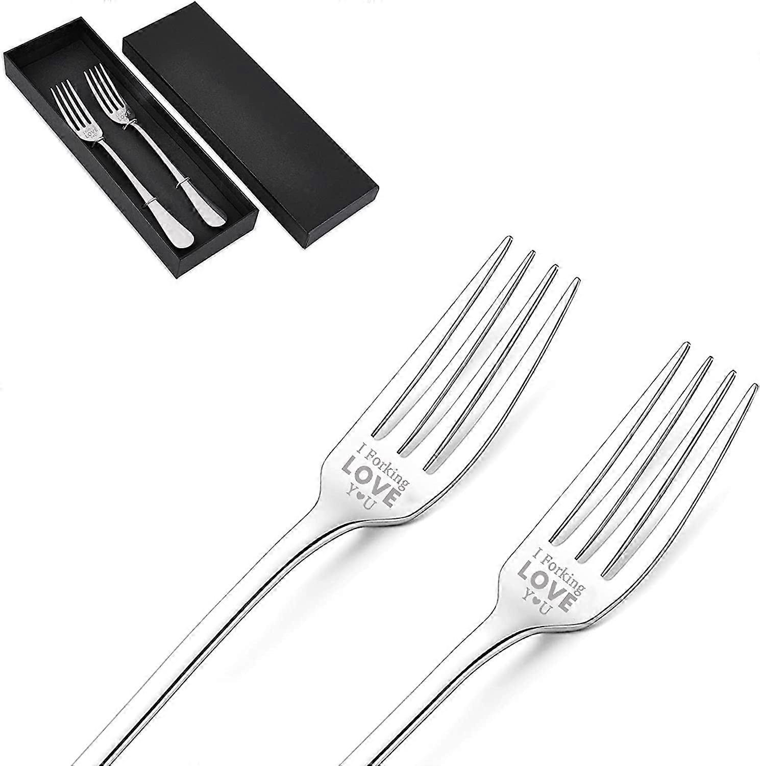 2Pcs I Forking Love You Engraved Fork with Gift Box Stainless Steel Funny Table Forks for Friends Families Festival Wedding 8Inches