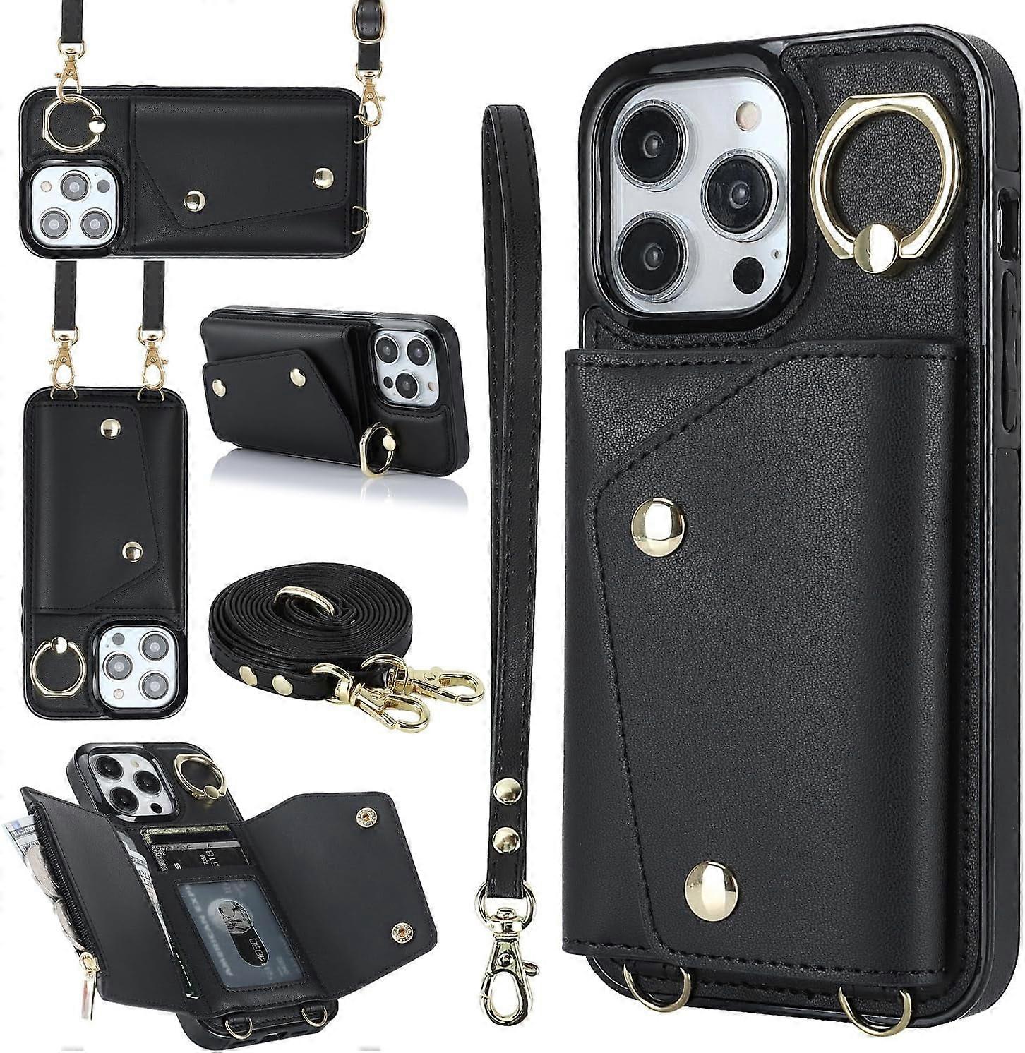 Phone Case Compatible with iPhone 15 Pro, Wallet Case with Card Holder, Crossbody Neck Strap, Wrist Strap, Kickstand, PU Leather Flip Case