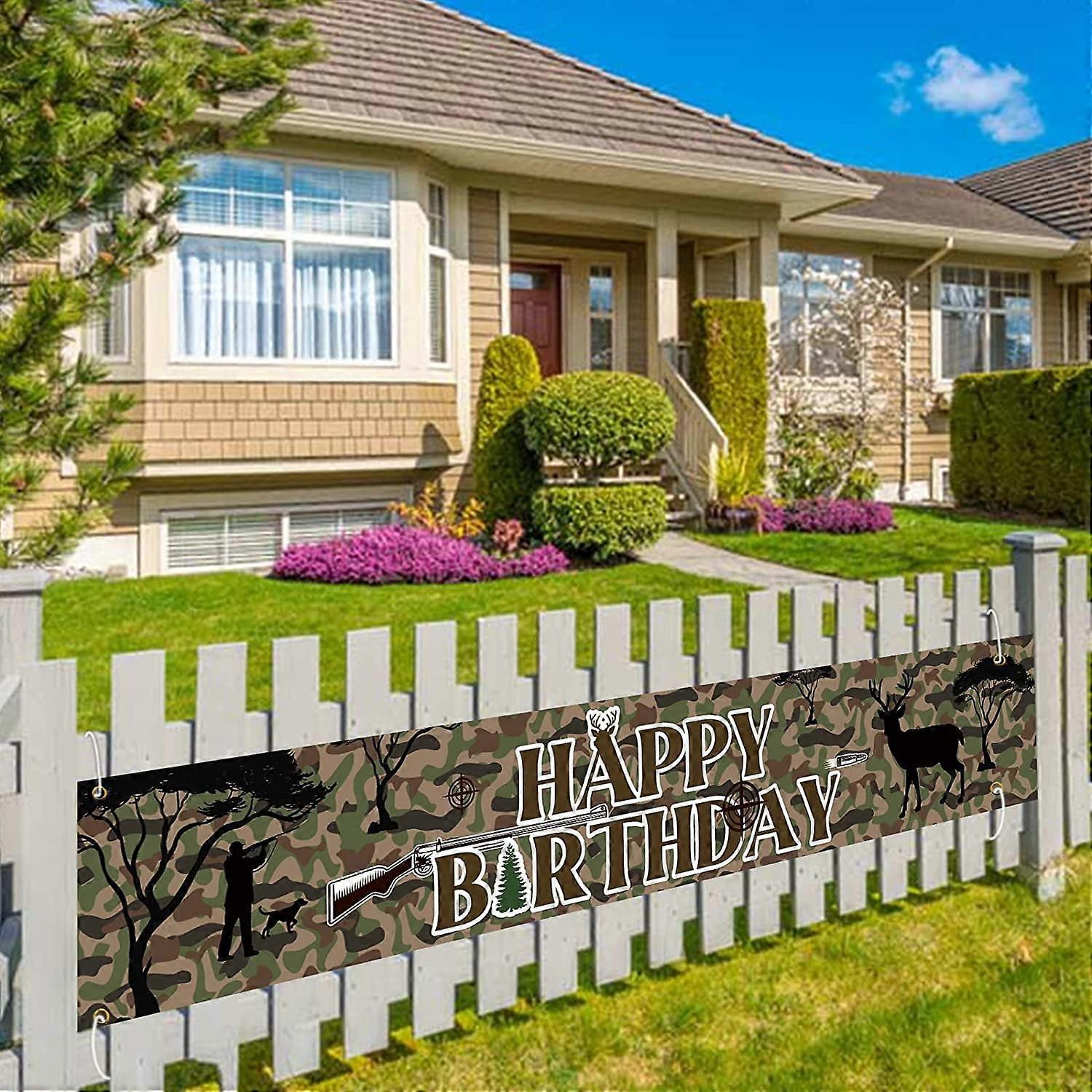 Custom Hunter Theme Happy Birthday Banner, Deer Hunting Party Decorations, Camping Birthday Backdrop for Man Kids Boys, 9.8x1.6Feet