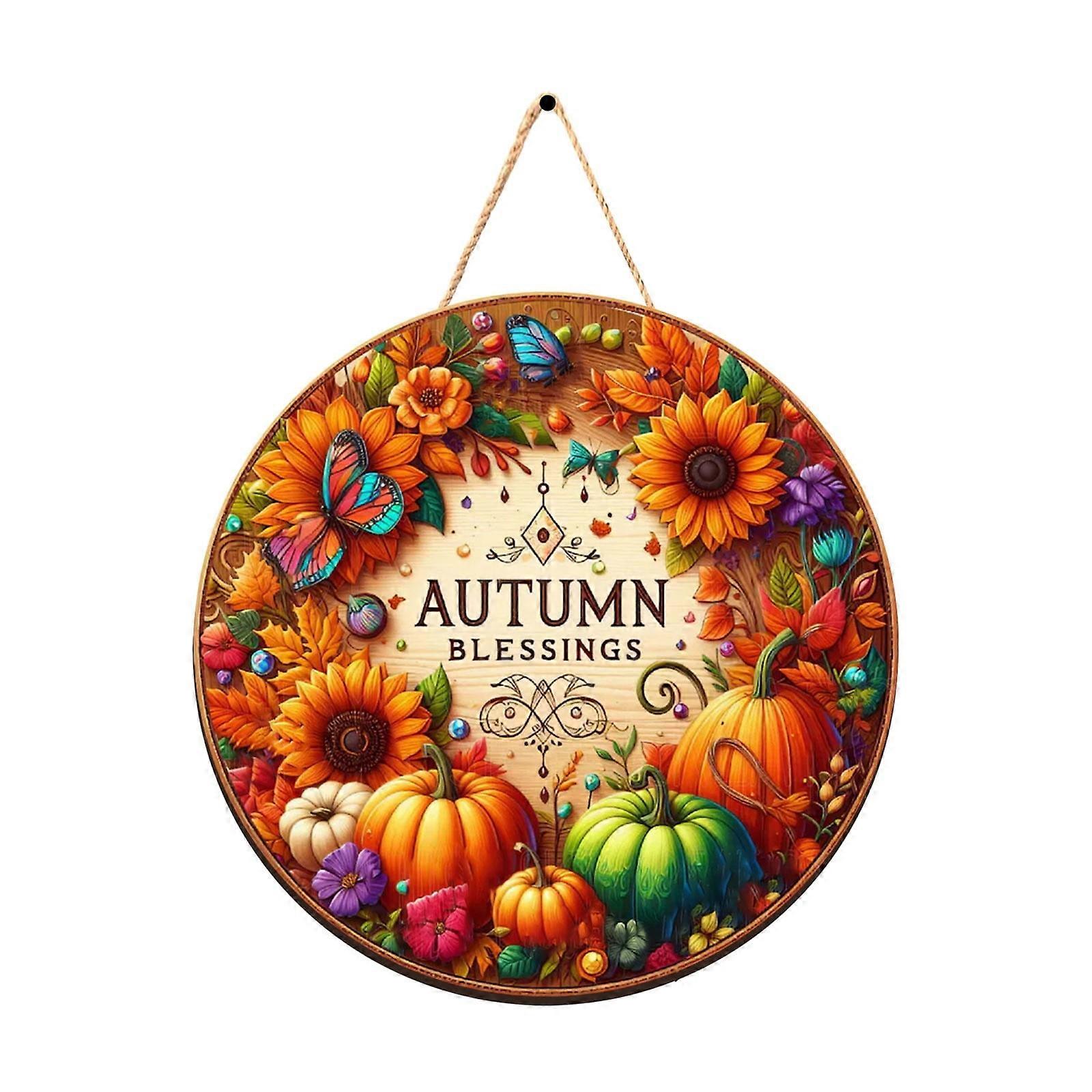 Autumn Decorative Doorplate, Wooden Hanging Doorplate, compatible with Home Front Door Wall Decoration, Halloween Xmas Gifts