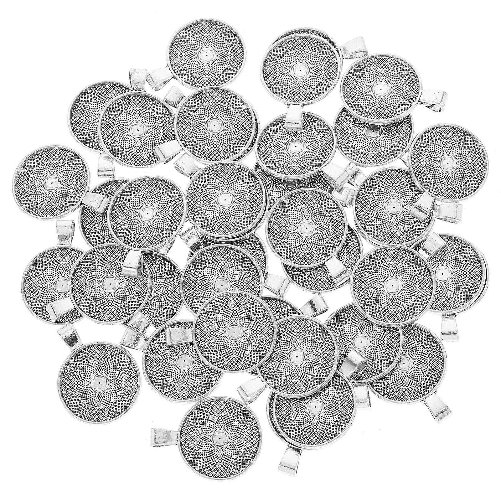 40Pcs Silver Jewelry Bezel Pendant Trays for Making Flat Round Pendant Bases