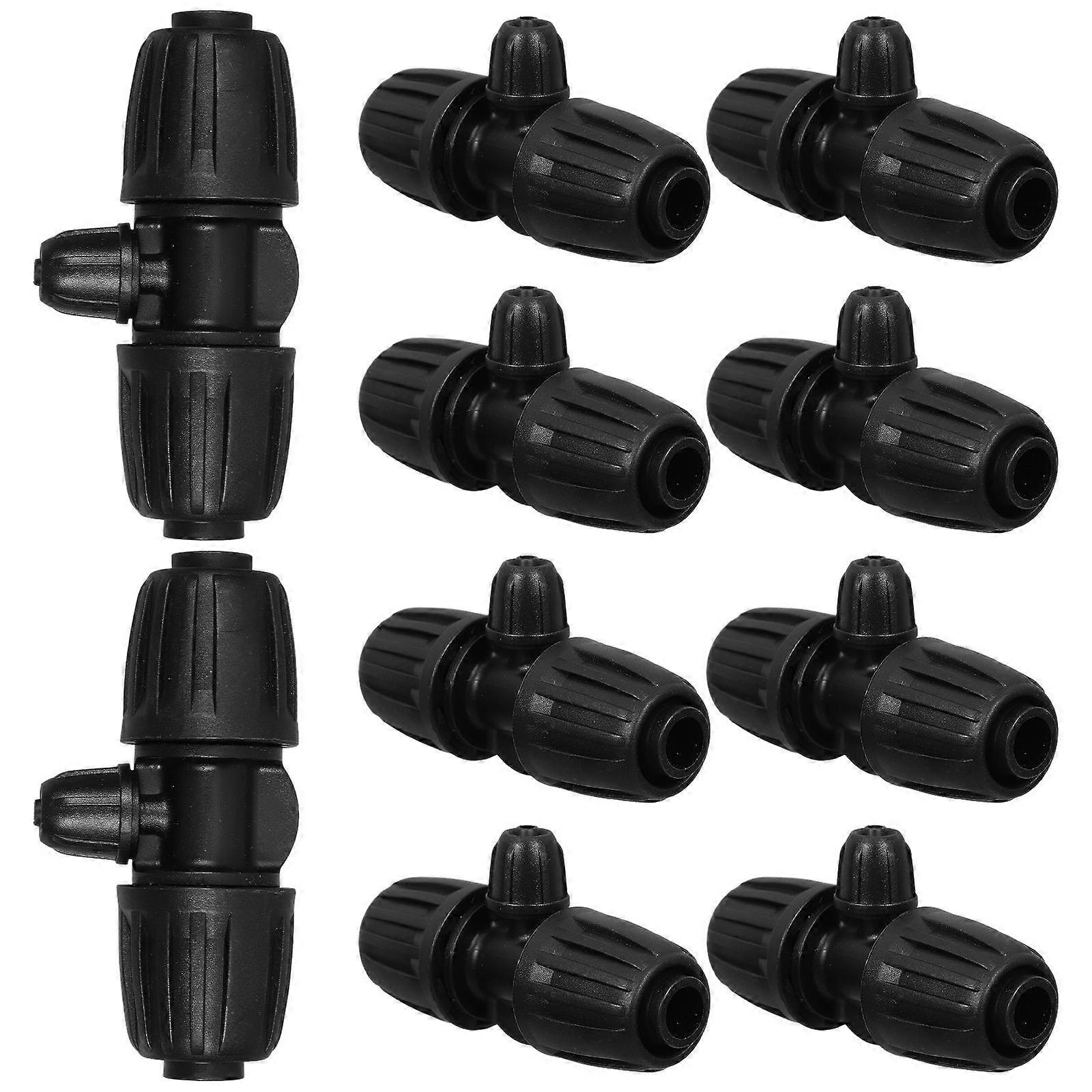 These drip irrigation connection fittings are essential for any efficient garden drip irrigation system. The barbed connectors irrigation design ensures a tight fit, preventing water wastage. Simply insert the 1/2 inch and 1/4 inch pipes into the drip irrigation barbed connectors and twist the for a secure hold. ideal for both and DIY irrigation tubing repair projects. Features -Color:Black -Material:PP -Size:8.40X4.20X1.70cm/3.30X1.65X0.67in - fit: these adapter tees are compatible with 1/2" drip irrigation tubing (0.6000.630 inch od) and 1/4" drip tubing (4 mm id), making them highly versatile -Leakproof design: the barbed design ensures a tight, leakproof connection, while the twist provides additional support to the drip tubing - installation: easily install without the need for glue, tools; just push the tubing over the barbs and tighten the locking nut -Robust construction: constructed from hard plastic, these fittings are durable and can withstand various environmental conditions -Wide application: suitable for use in gardens, greenhouses, flower beds, patios, and agricultural watering systems Package list: 10 x drip irrigation connectors